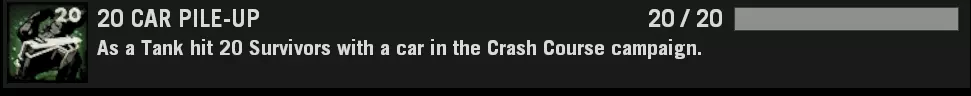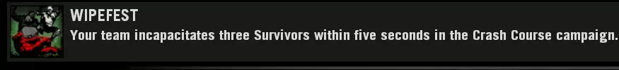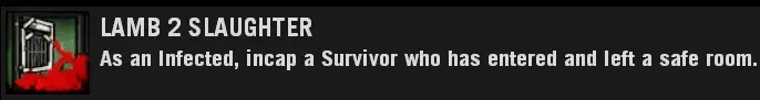 分屏:必需 AI感染者:非必需 地图选择:任意 地图指令:map l4d_vs_hospital01_apartment versus 加载地图后,若不在感染者队伍则切换至感染者队伍。 连接分屏玩家。 若不是吸烟者或猎人,自杀直至成为吸烟者或猎人。踢出2名AI幸存者。等待获得重生权限。 重生后,先击杀AI幸存者,然后攻击分屏玩家以获取成就。