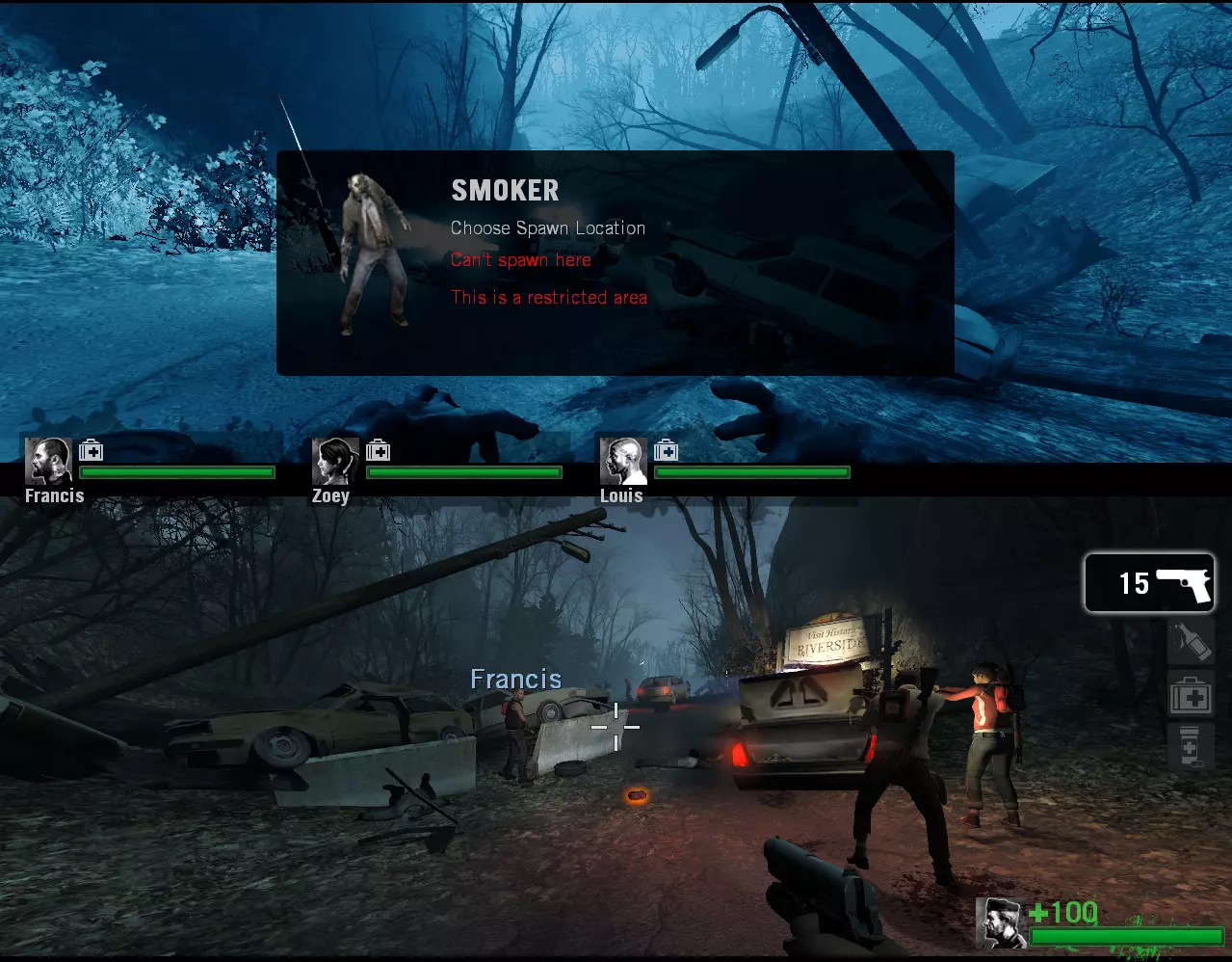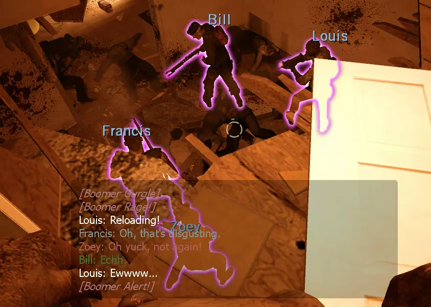 你可以使用以下指令踢出AI: 踢出比尔 踢出佐伊 踢出路易斯 踢出弗朗西斯 踢出猎人 踢出吸烟者 踢出Boomer 踢出坦克 但不要立即踢出它们,我会告诉你何时踢出机器人。 注意 如果尸潮生成并无情地攻击你的分屏目标。
