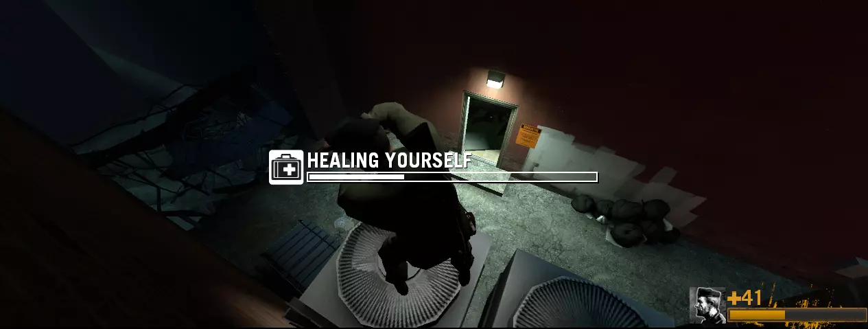 分屏:需要 AI感染者:不需要 选择地图:公寓 地图指令:map l4d_vs_hospital01_apartment versus 加载地图后,加入幸存者队伍。踢出2个 bots 并连接分屏玩家。 这个操作有一定时间限制,因为你不希望分屏玩家被尸潮杀死。 你们必须跳下这些通风管道。