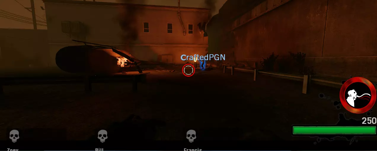 分屏:不需要 AI感染者:不需要 选择地图:后巷 地图指令:map l4d_garage01_alleys versus 加载地图后,切换到幸存者队伍。击晕你的AI队友,然后自焚直至死亡。