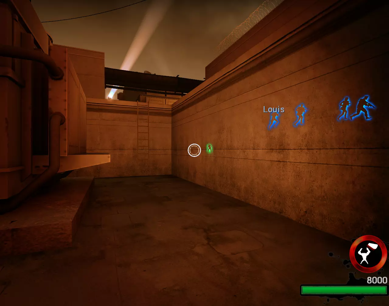 分屏:必需 AI感染者:非必需 选择地图:后巷 地图指令:map l4d_garage01_alleys versus 加载地图后,若不在感染者队伍则切换至感染者队伍。 连接分屏设备。建议分屏玩家选择弗朗西斯或路易斯,因其初始位置对此有利。 若不是猎人,可在能重生时自杀或重启直至成为猎人。踢出AI幸存者。在可重生时重生。