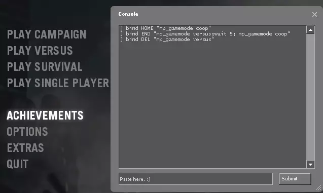 各位成就猎人!我将向大家展示如何独自完成对战模式的成就,无需使用分屏;部分成就需要一些运气。 请注意,【OUTBREAK】成就要求你被已获得该成就的玩家呕吐攻击。你可以加入一些对战服务器自然获得它,但这是对战模式中唯一需要其他玩家协助的成就。 设置 控制台 这需要用到控制台;你必须点击选项,选择键盘/鼠标,然后从那里启用开发者控制台。