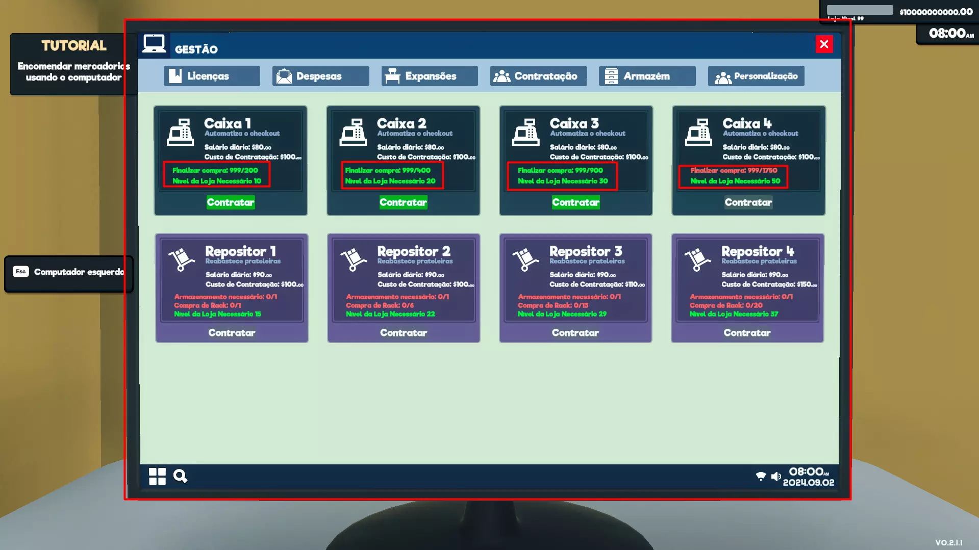 现在在此处输入“1750”即可获取完整更新以雇佣收银员