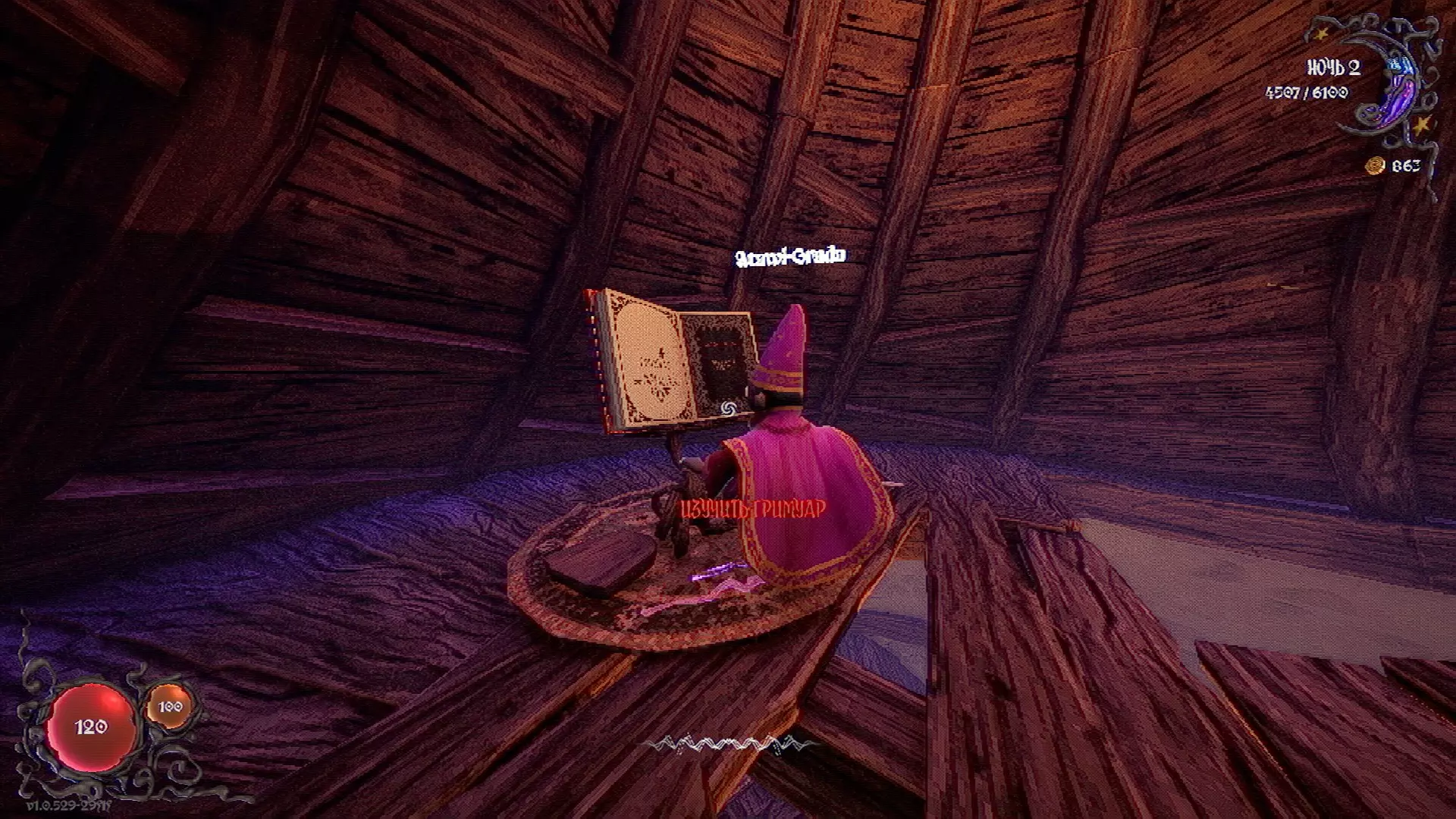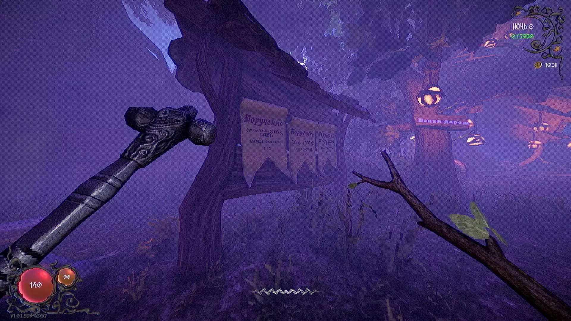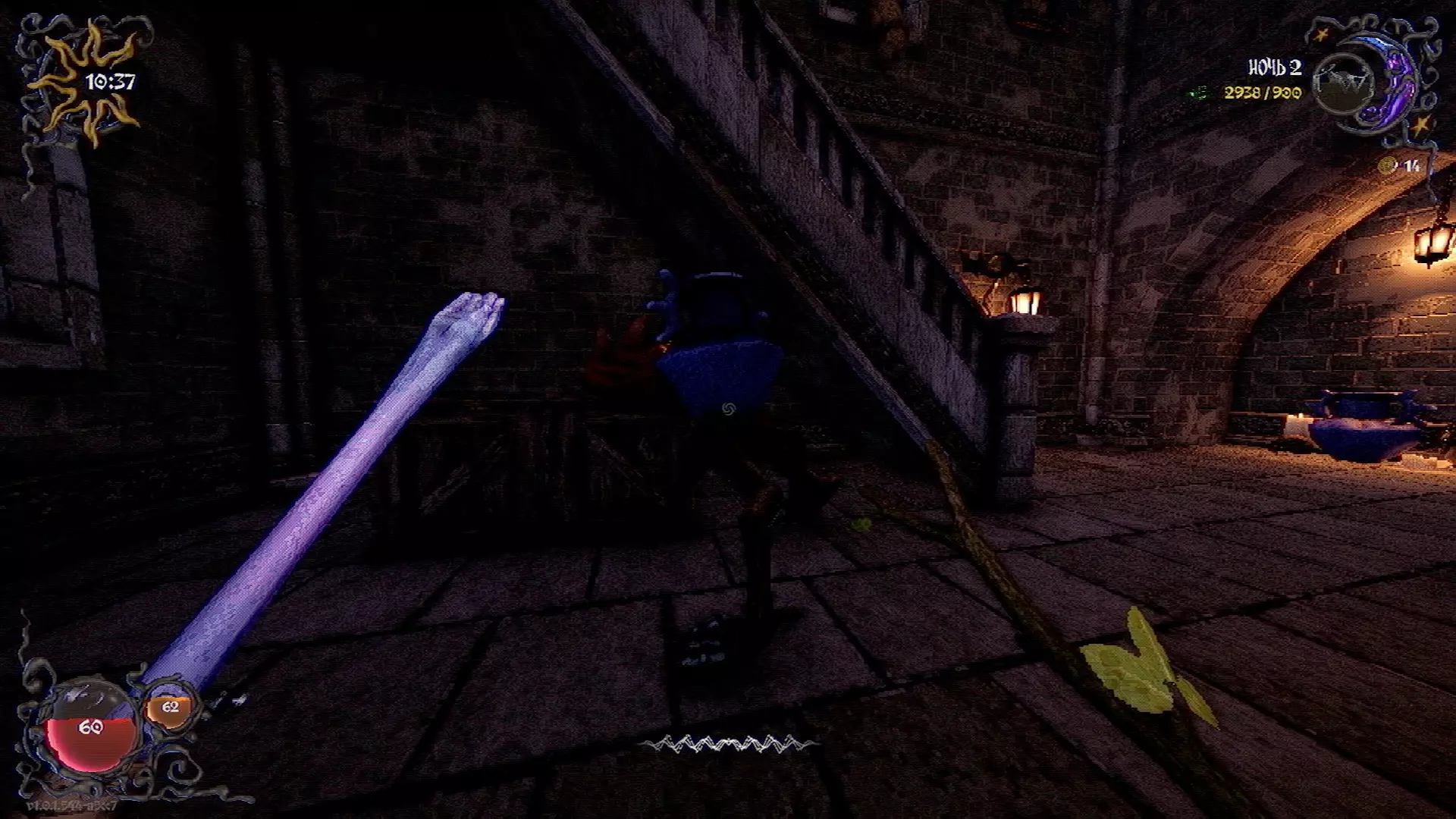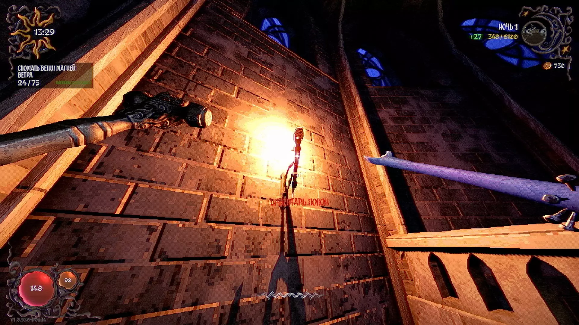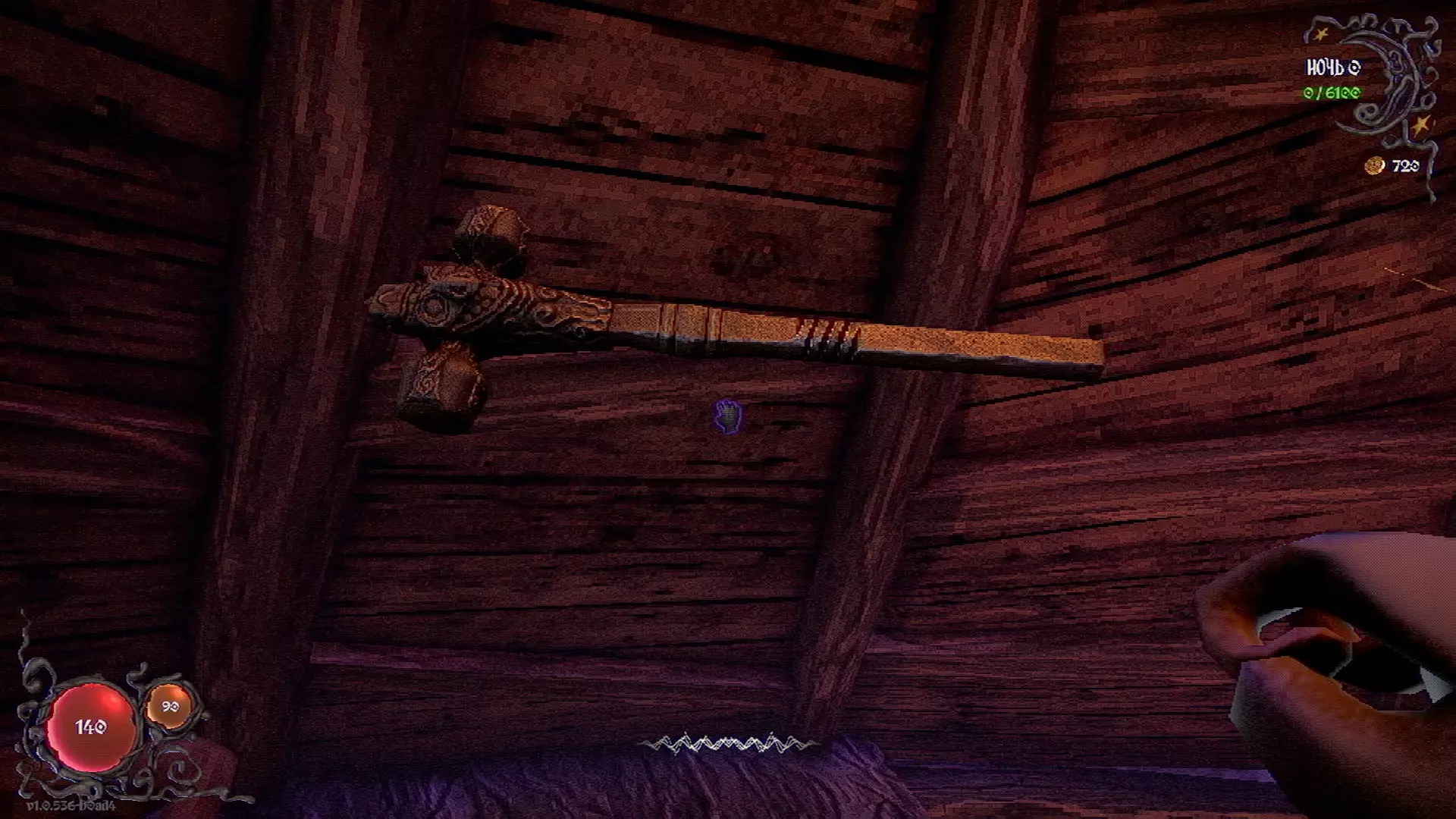 无法购买。通过在卫生间房间内完成试炼获得。 召唤锤子,锤子会造成伤害并破坏物体。 没有秘密。 补充说明:如果说“ХОРОШИЙ МАЛЬЧИК”,会触发抚摸动画。 在游戏文件中发现了用于火炬的“ФАКЕЛ”咒语,但未检测到其效果。此外,似乎还有火焰法杖的【火焰】法术,以及其他一些用于未知物品和法杖的法术。任务