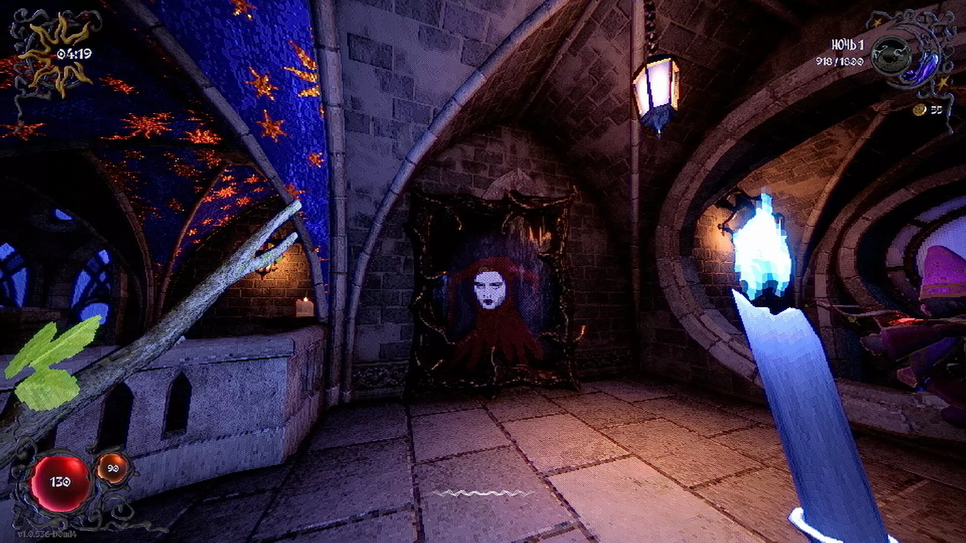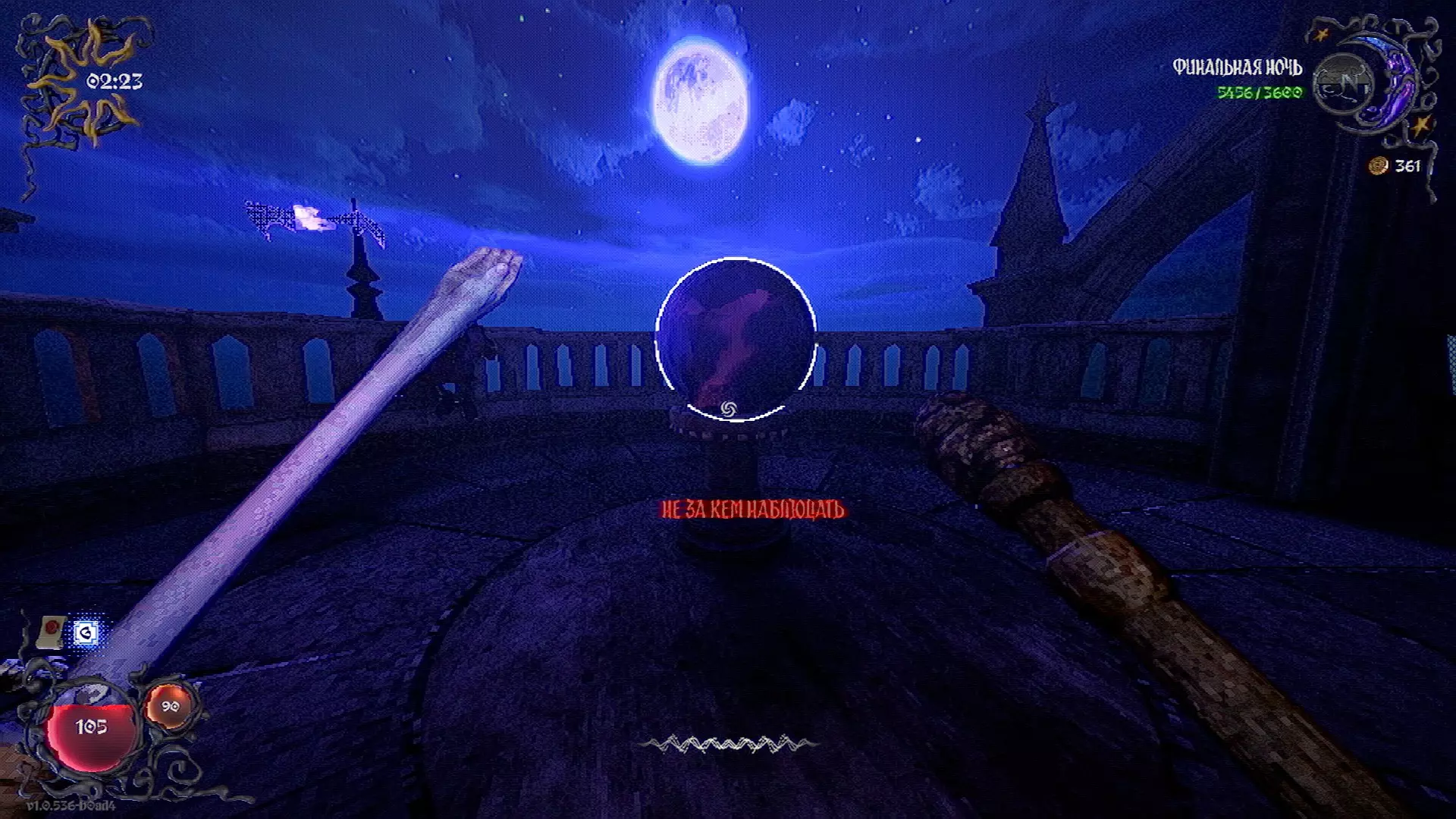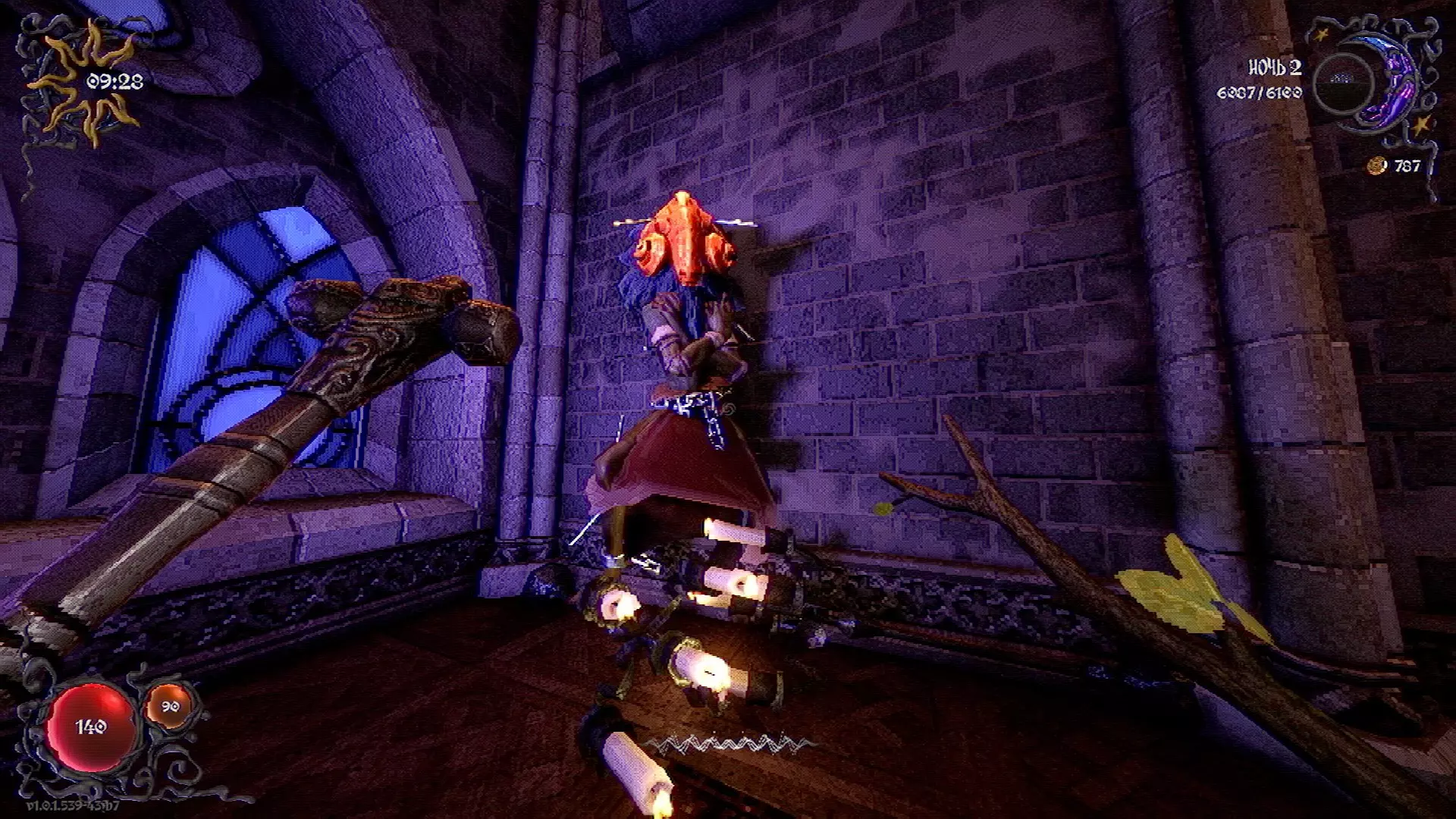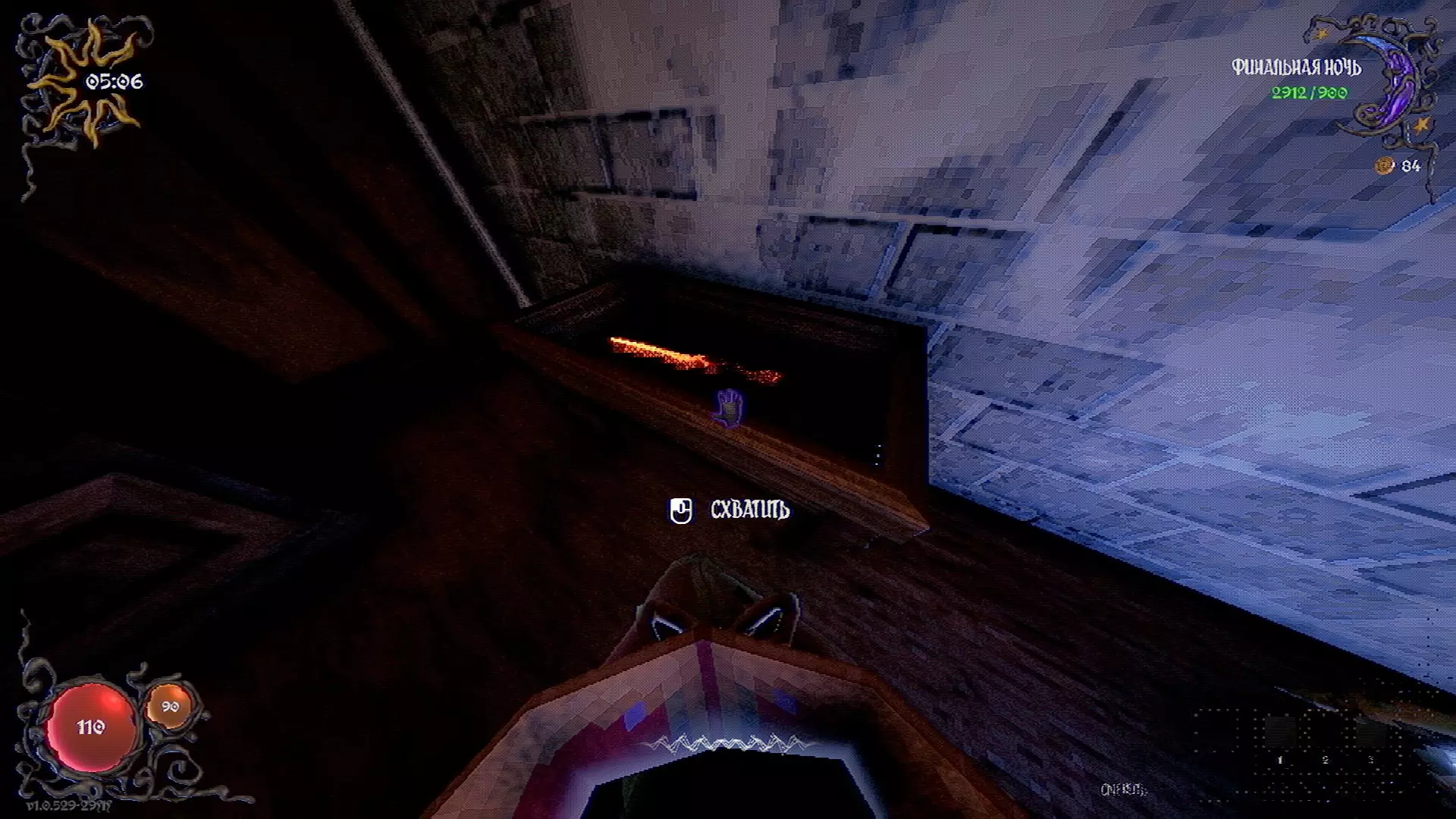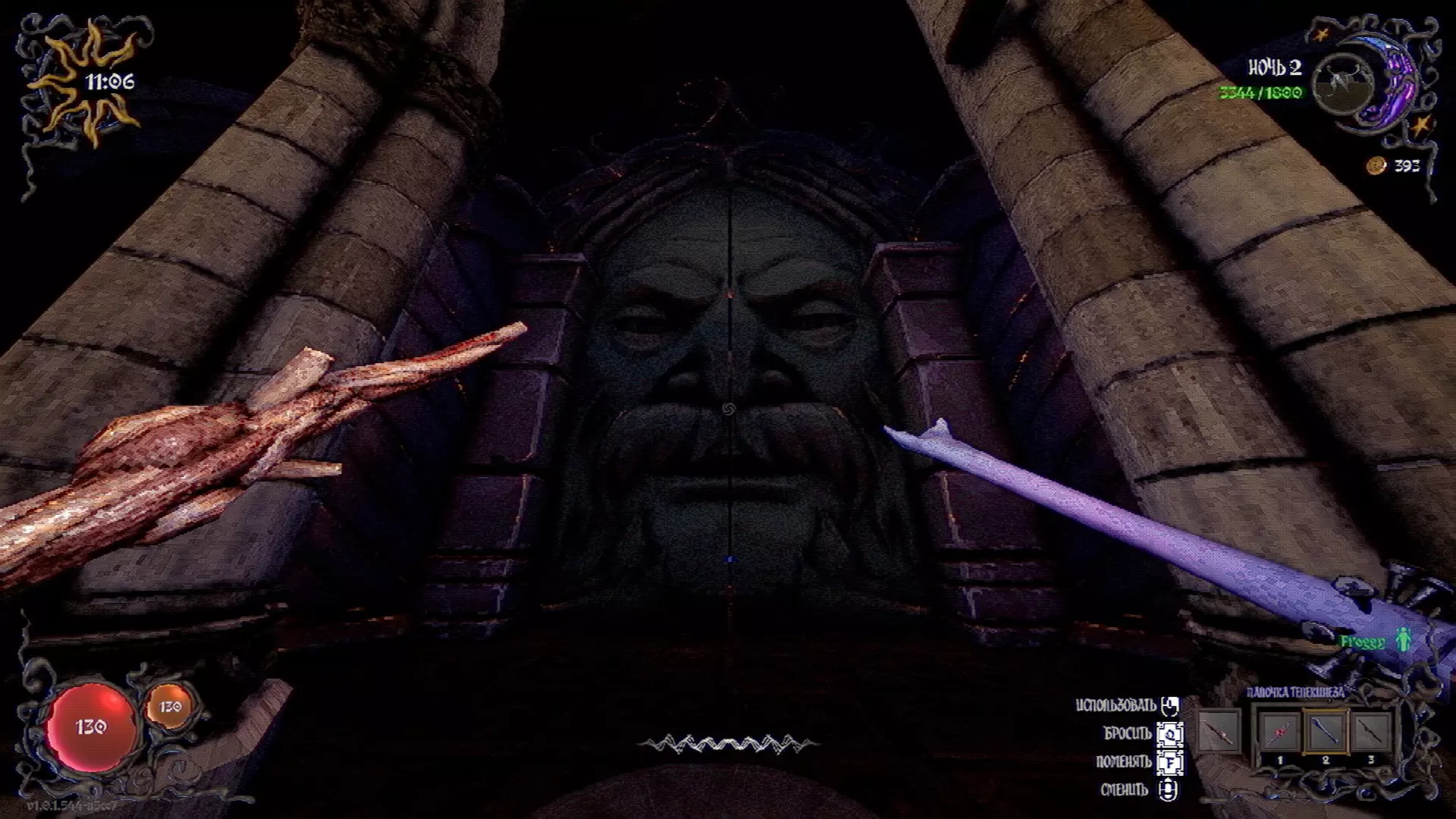 无法购买。通过在卫生间房间内完成试炼获得。 召唤锤子,锤子会造成伤害并破坏物体。 没有秘密。 补充说明:如果说“ХОРОШИЙ МАЛЬЧИК”,会触发抚摸动画。 在游戏文件中发现了用于火炬的“ФАКЕЛ”咒语,但未检测到其效果。此外,似乎还有火焰法杖的【火焰】法术,以及其他一些用于未知物品和法杖的法术。任务