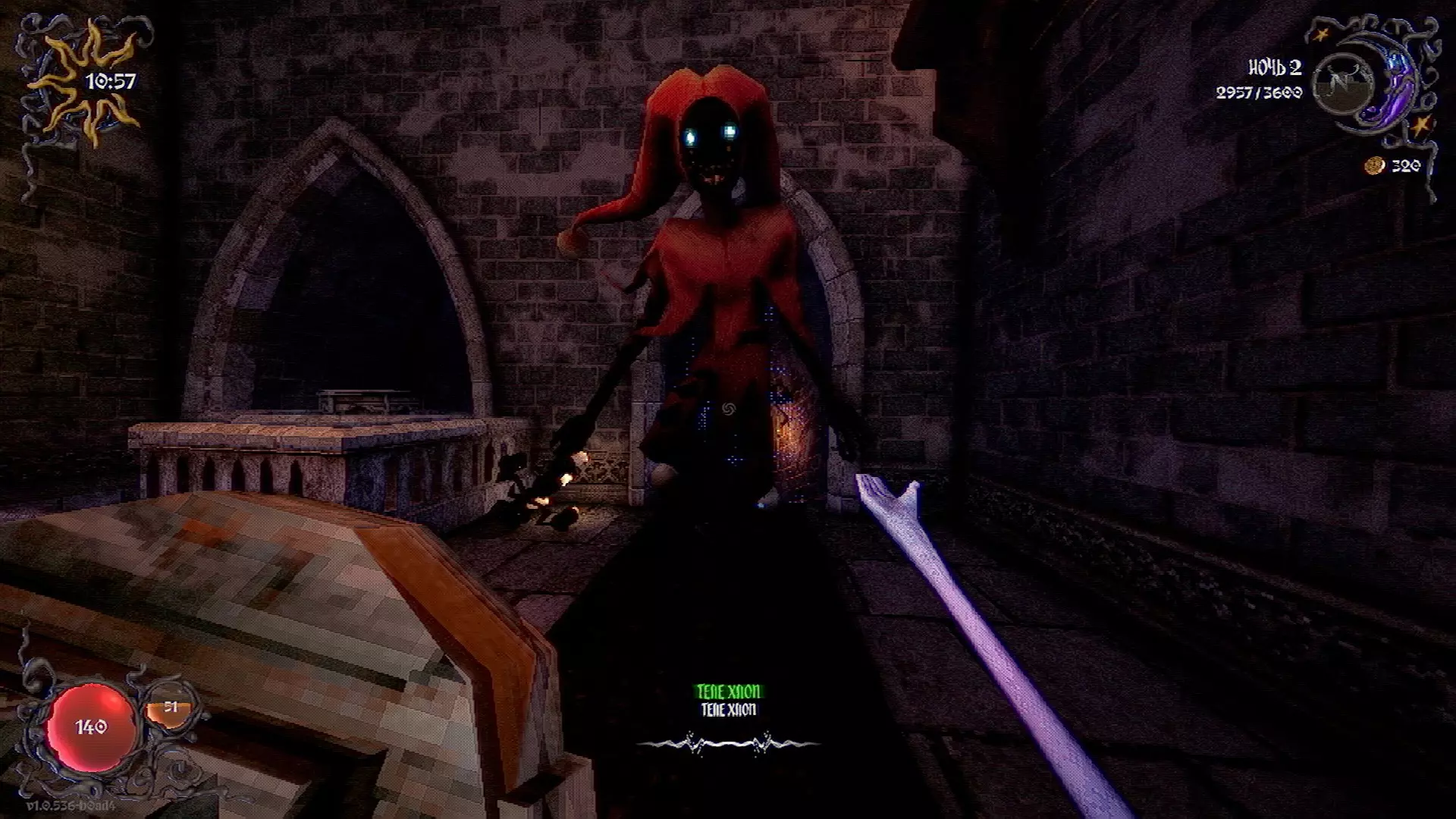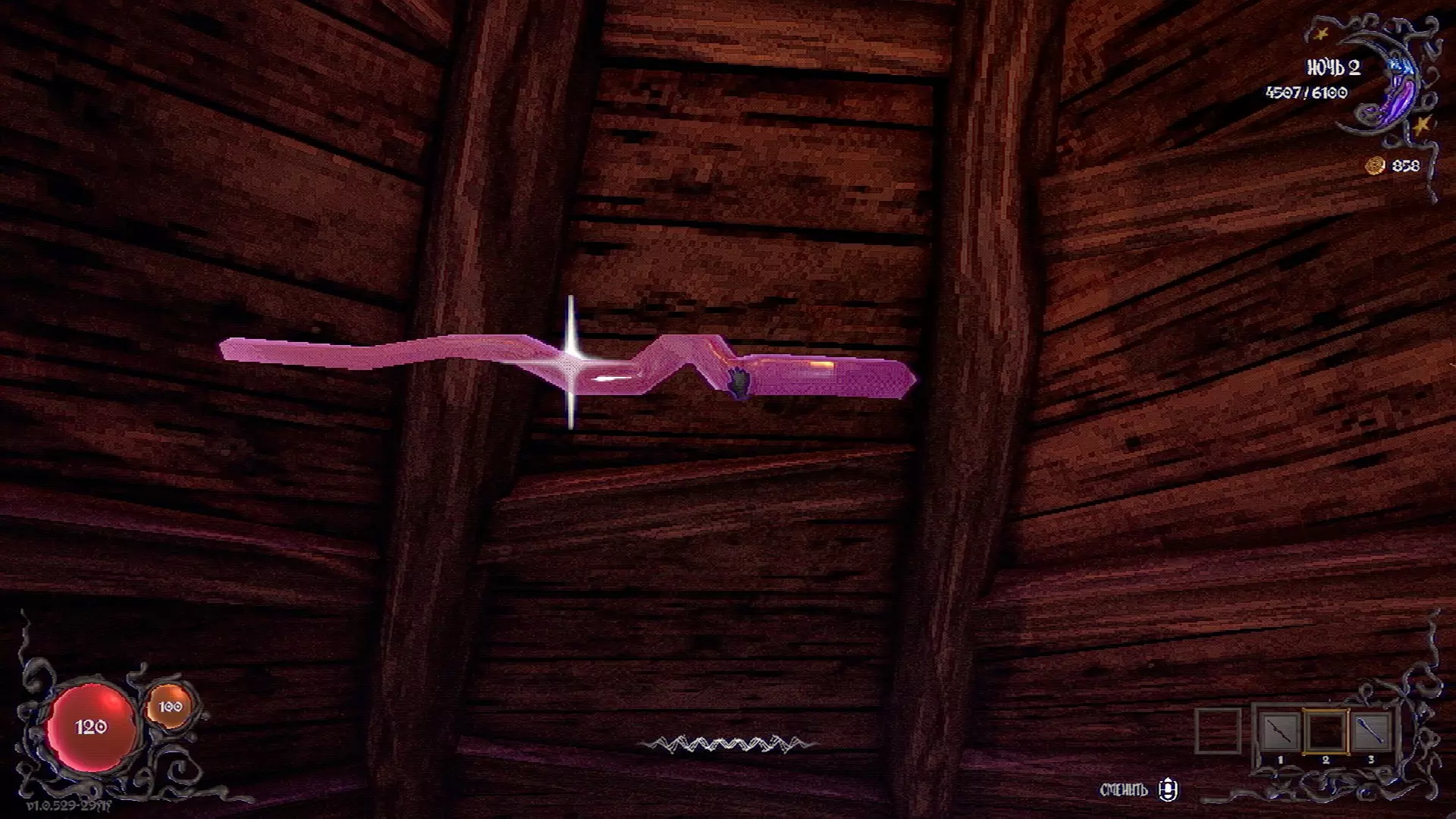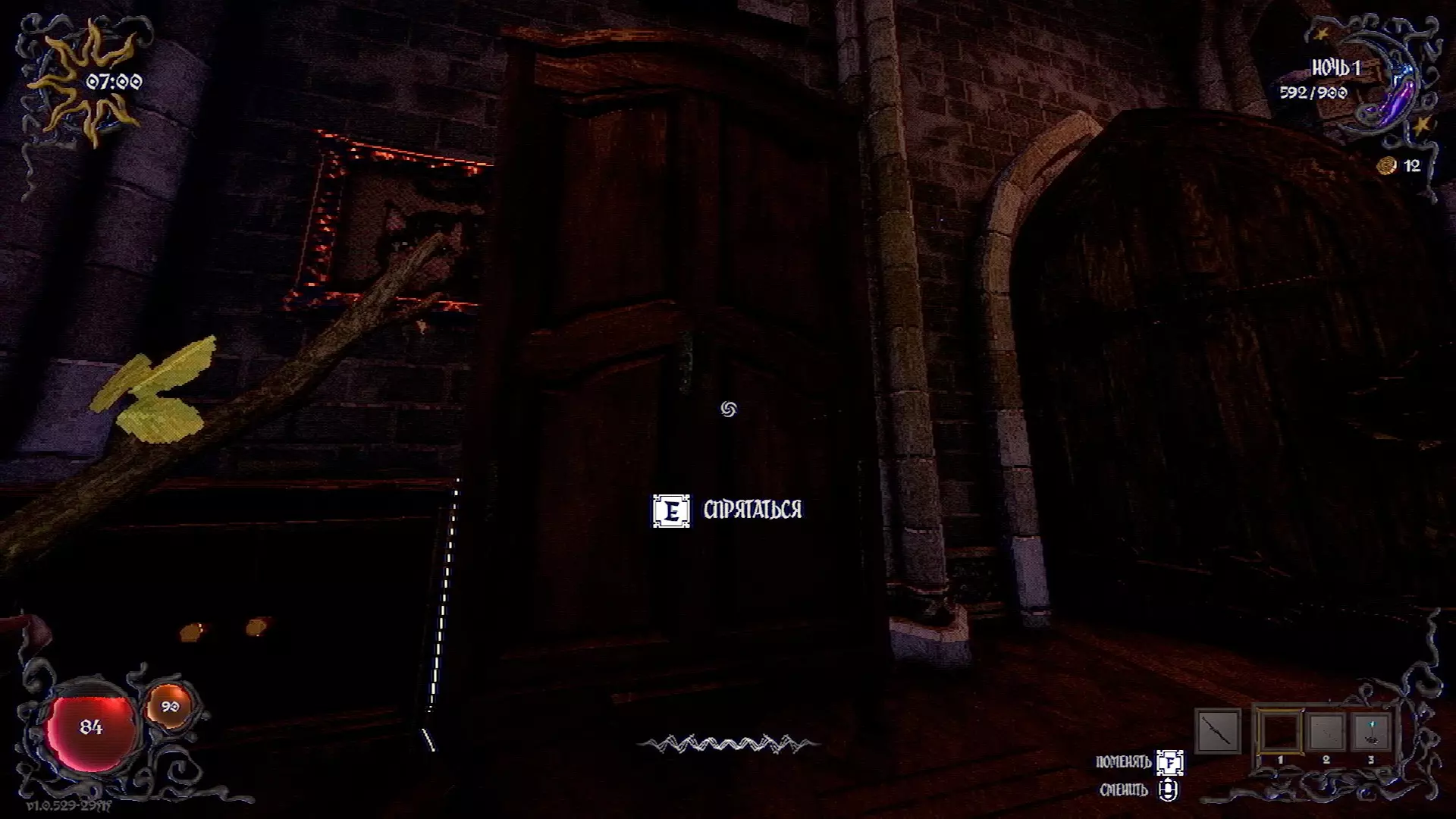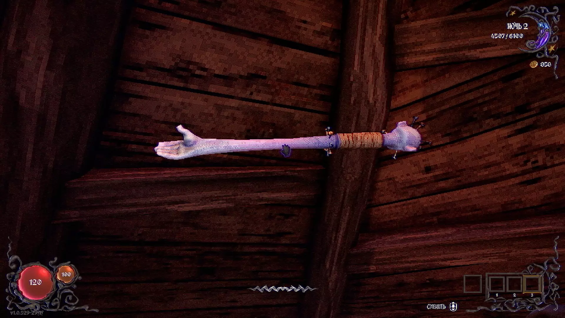 无法购买。通过在卫生间房间内完成试炼获得。 召唤锤子,锤子会造成伤害并破坏物体。 没有秘密。 补充说明:如果说“ХОРОШИЙ МАЛЬЧИК”,会触发抚摸动画。 在游戏文件中发现了用于火炬的“ФАКЕЛ”咒语,但未检测到其效果。此外,似乎还有火焰法杖的【火焰】法术,以及其他一些用于未知物品和法杖的法术。任务