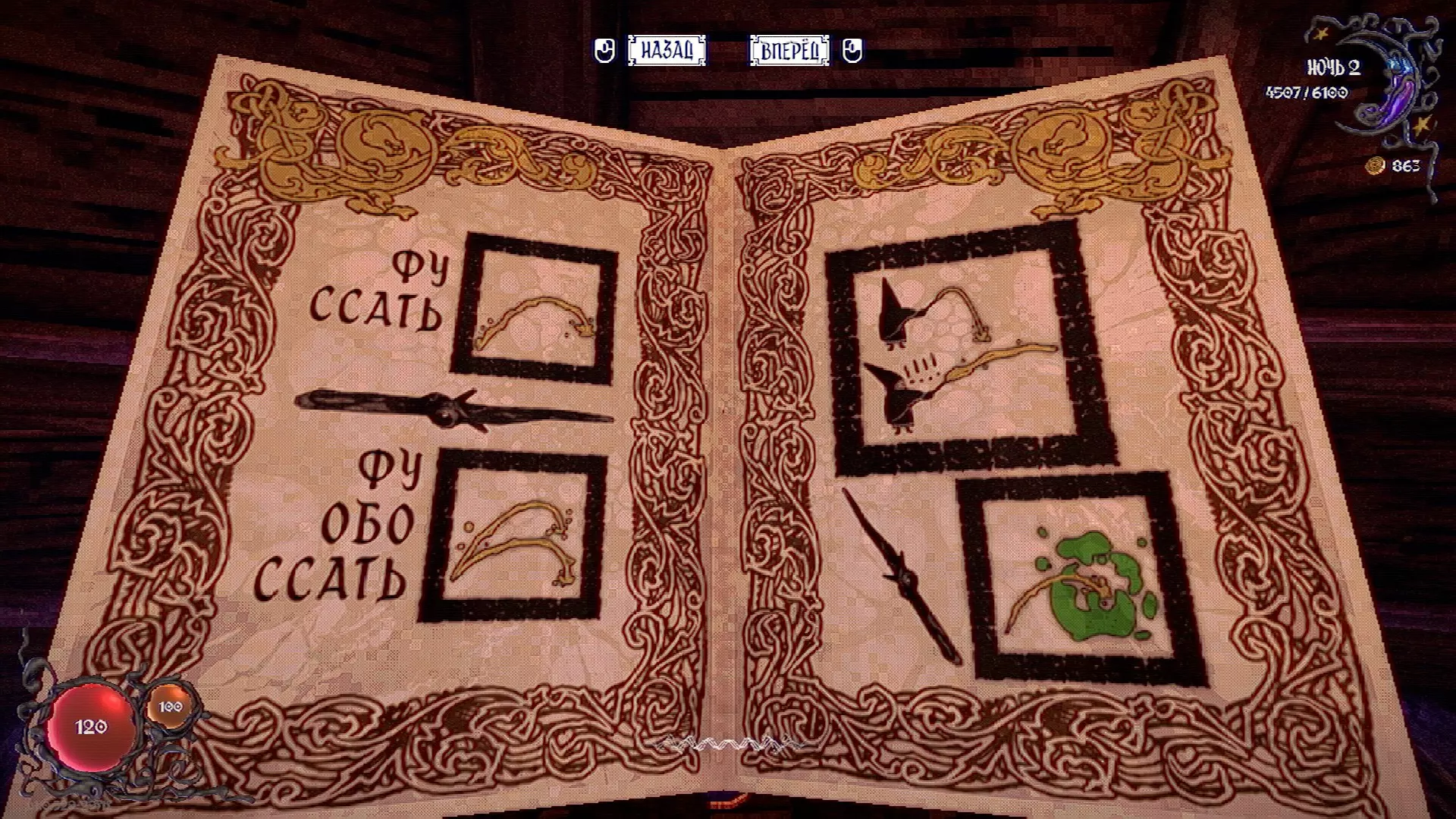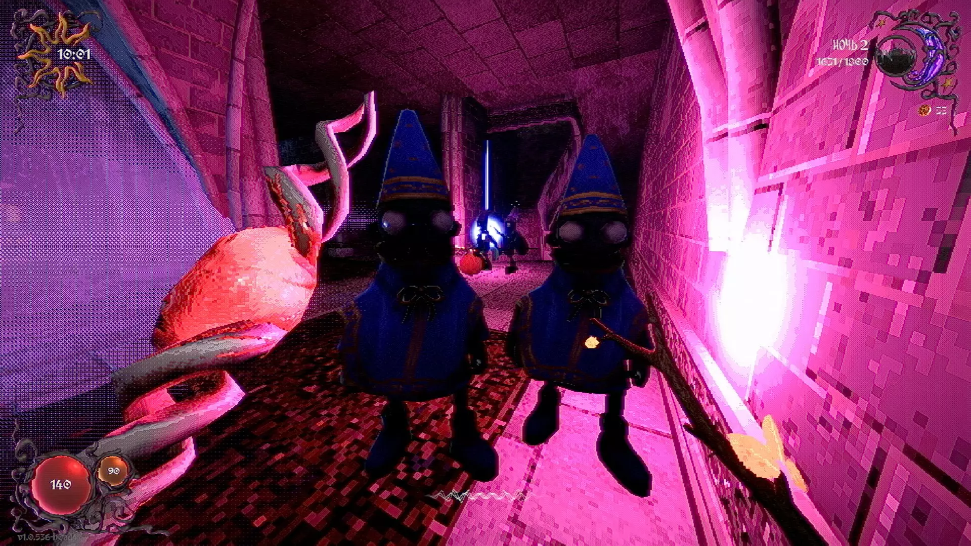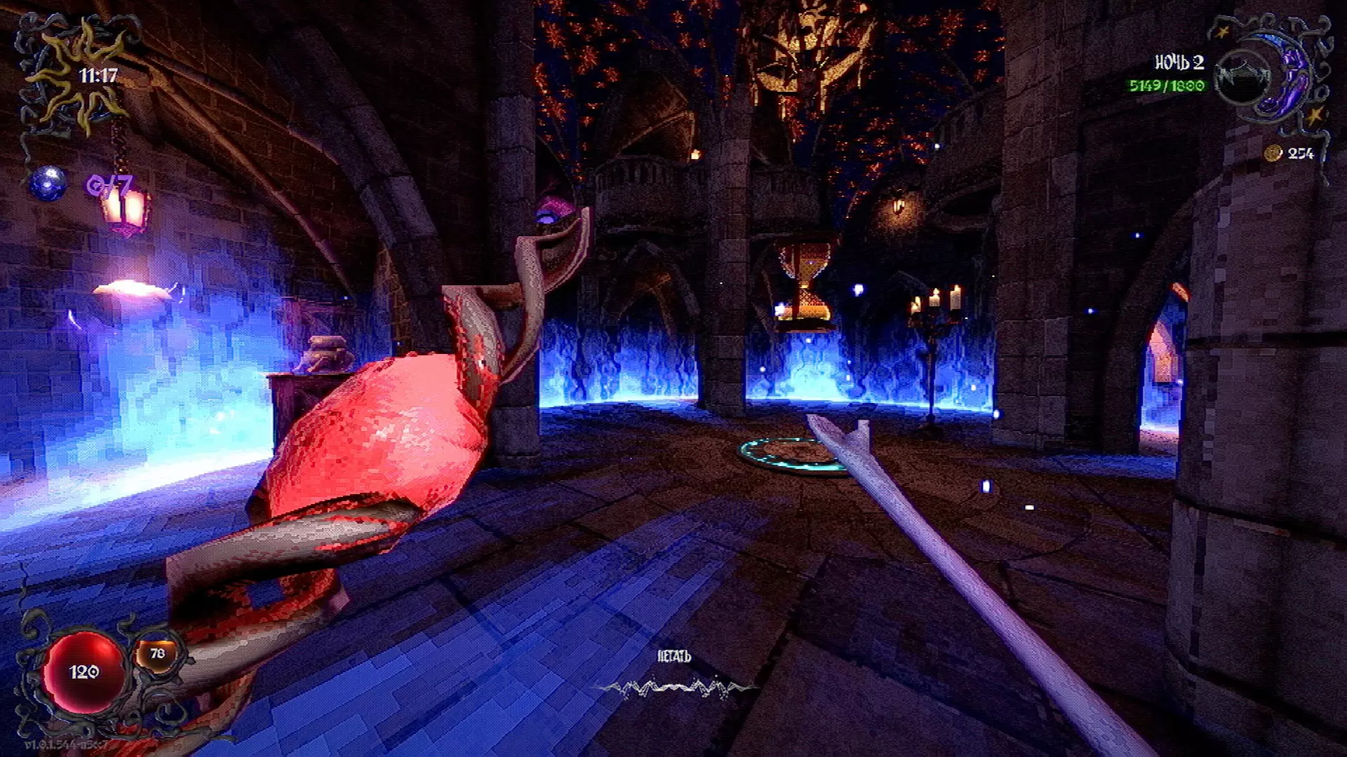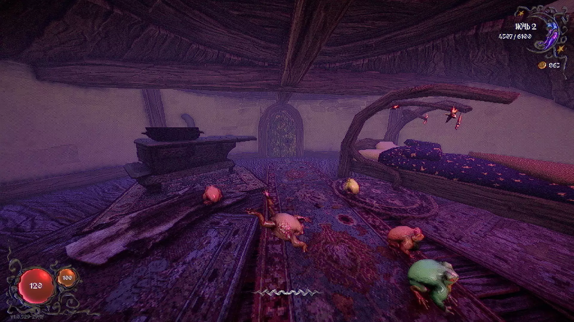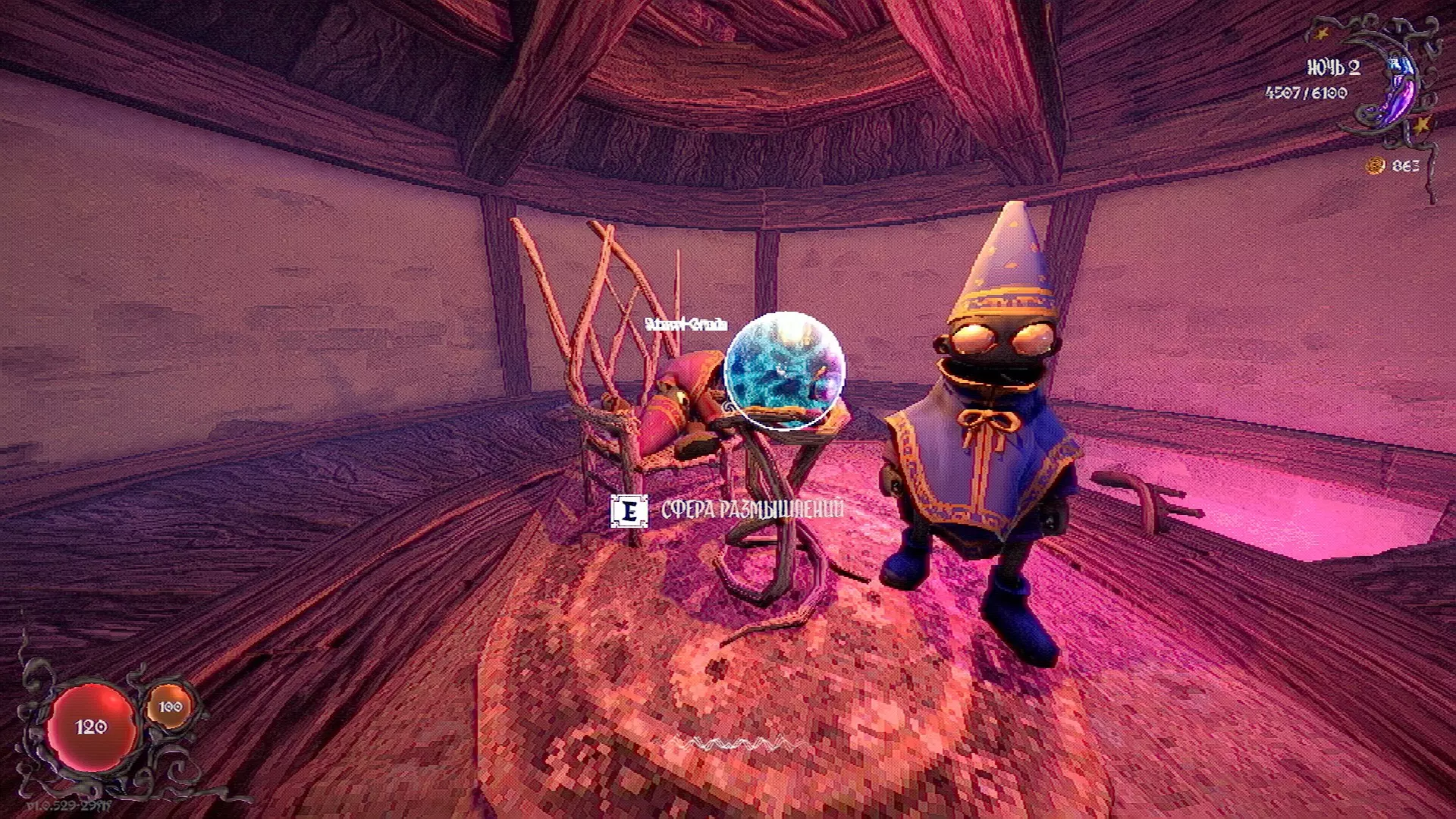无法购买。通过在卫生间房间内完成试炼获得。 召唤锤子,锤子会造成伤害并破坏物体。 没有秘密。 补充说明:如果说“ХОРОШИЙ МАЛЬЧИК”,会触发抚摸动画。 在游戏文件中发现了用于火炬的“ФАКЕЛ”咒语,但未检测到其效果。此外,似乎还有火焰法杖的【火焰】法术,以及其他一些用于未知物品和法杖的法术。任务