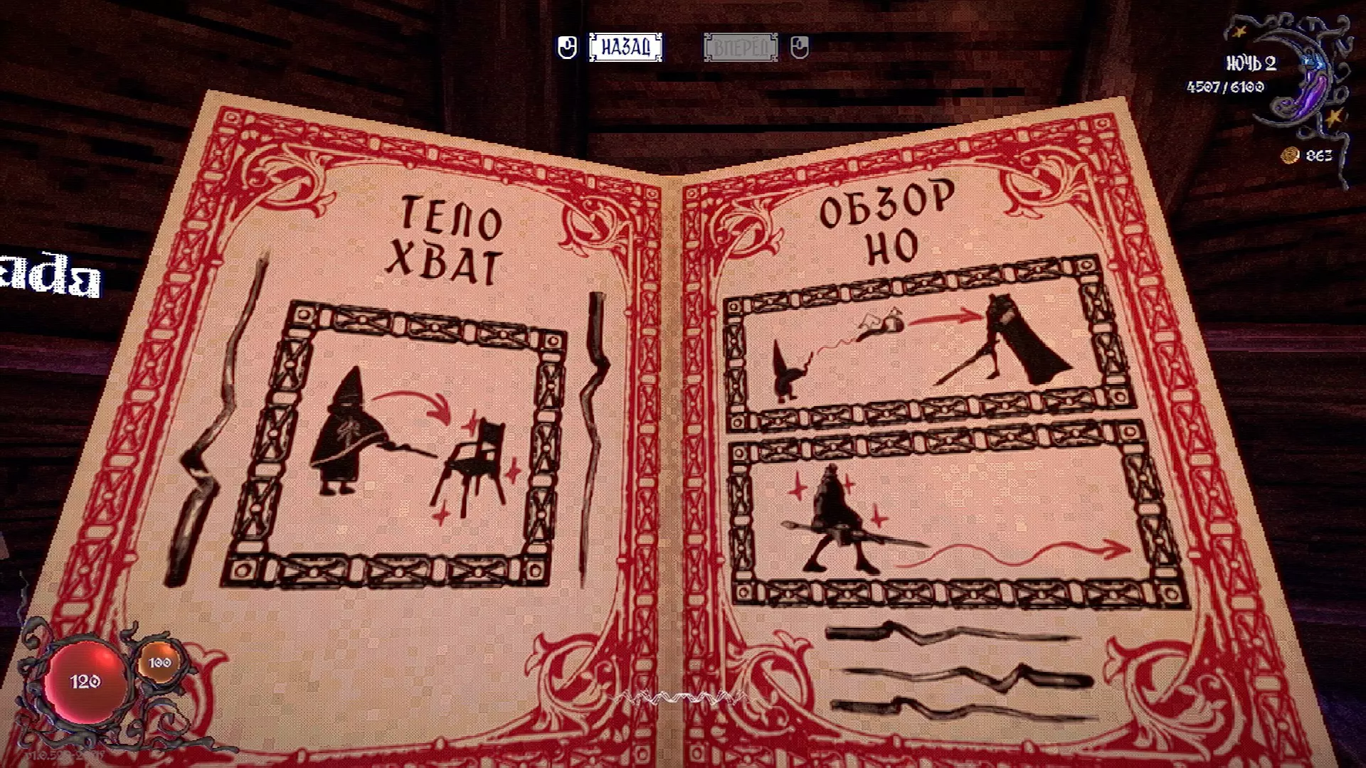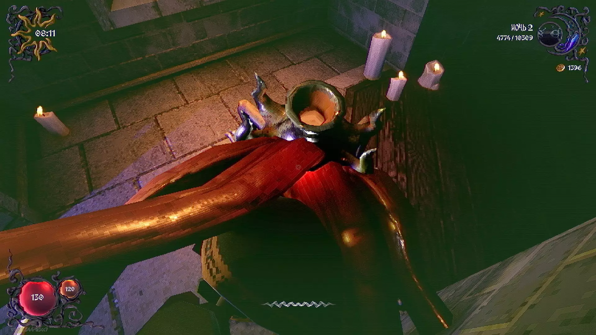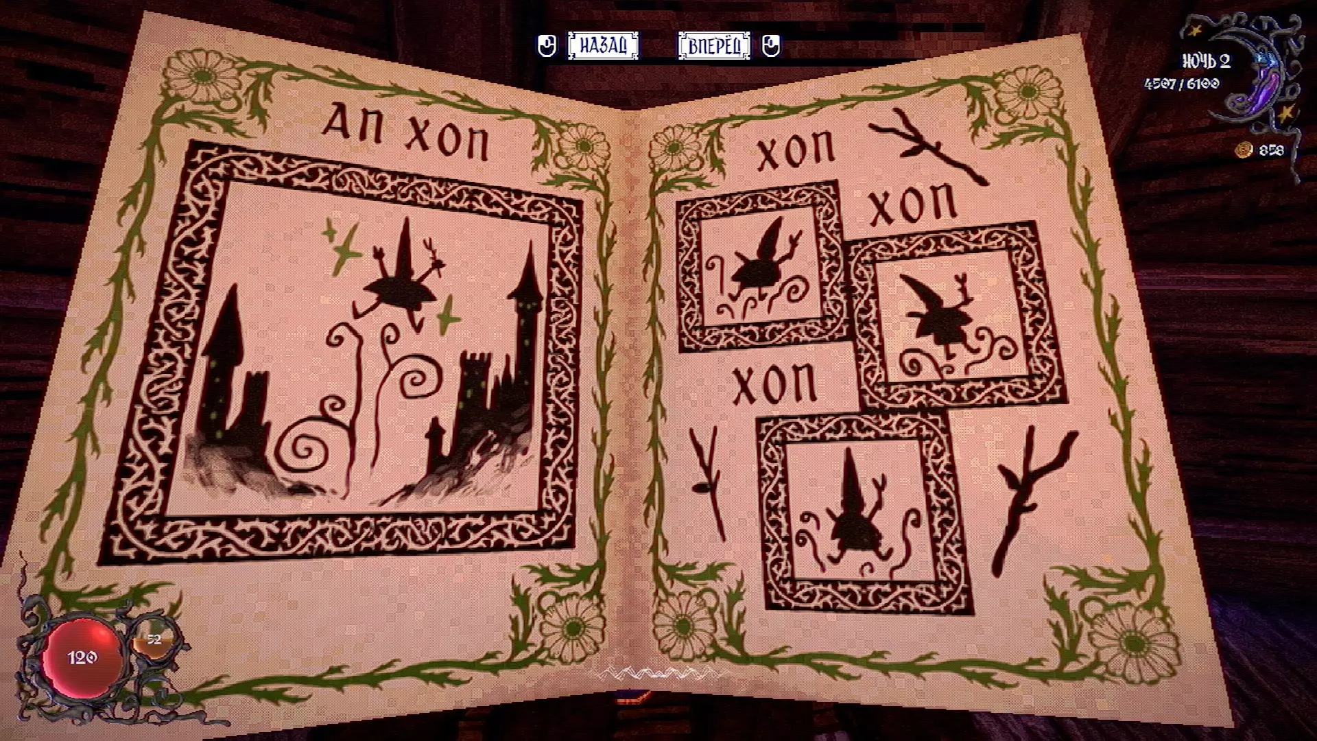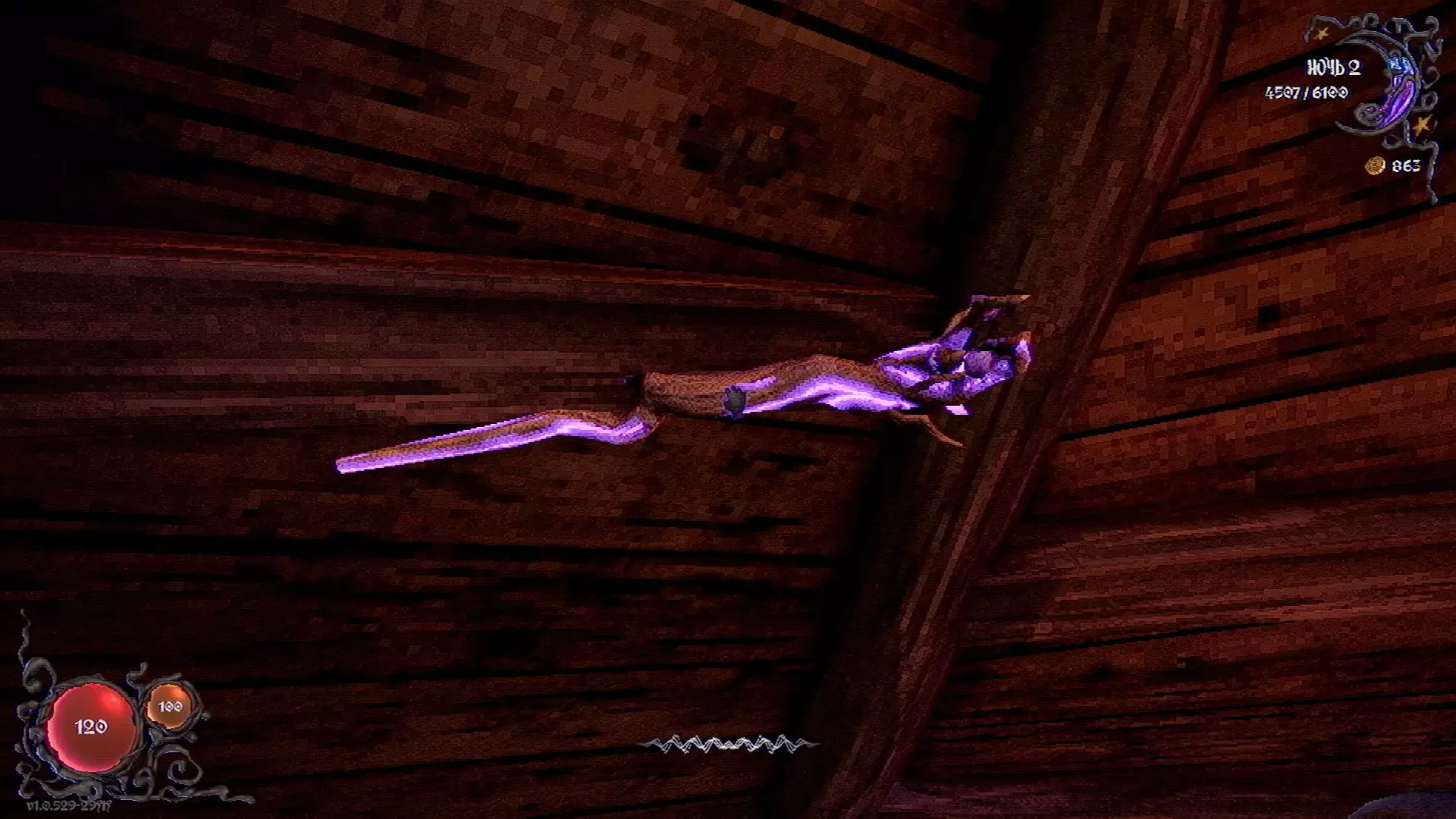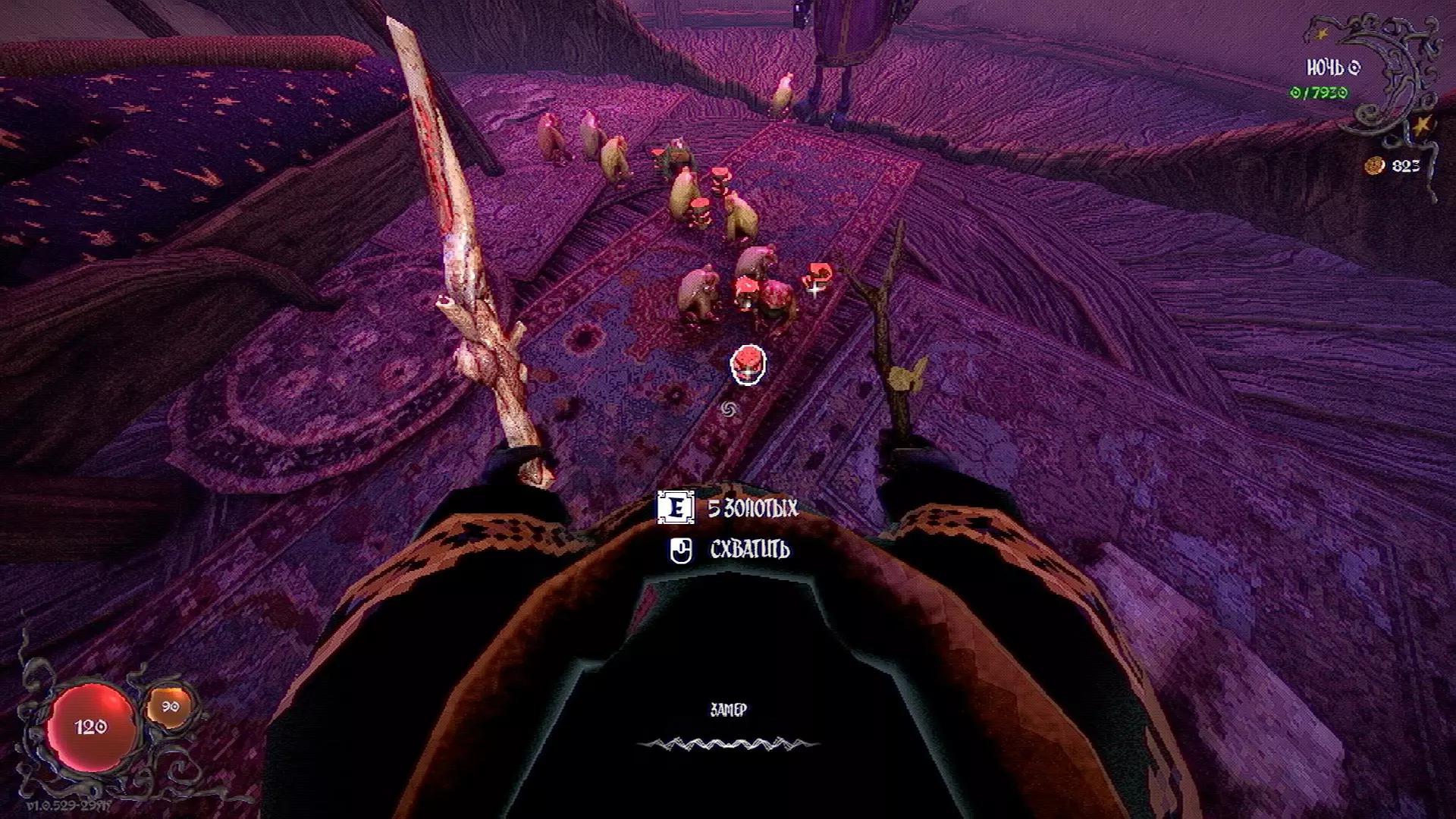 无法购买。通过在卫生间房间内完成试炼获得。 召唤锤子,锤子会造成伤害并破坏物体。 没有秘密。 补充说明:如果说“ХОРОШИЙ МАЛЬЧИК”,会触发抚摸动画。 在游戏文件中发现了用于火炬的“ФАКЕЛ”咒语,但未检测到其效果。此外,似乎还有火焰法杖的【火焰】法术,以及其他一些用于未知物品和法杖的法术。任务