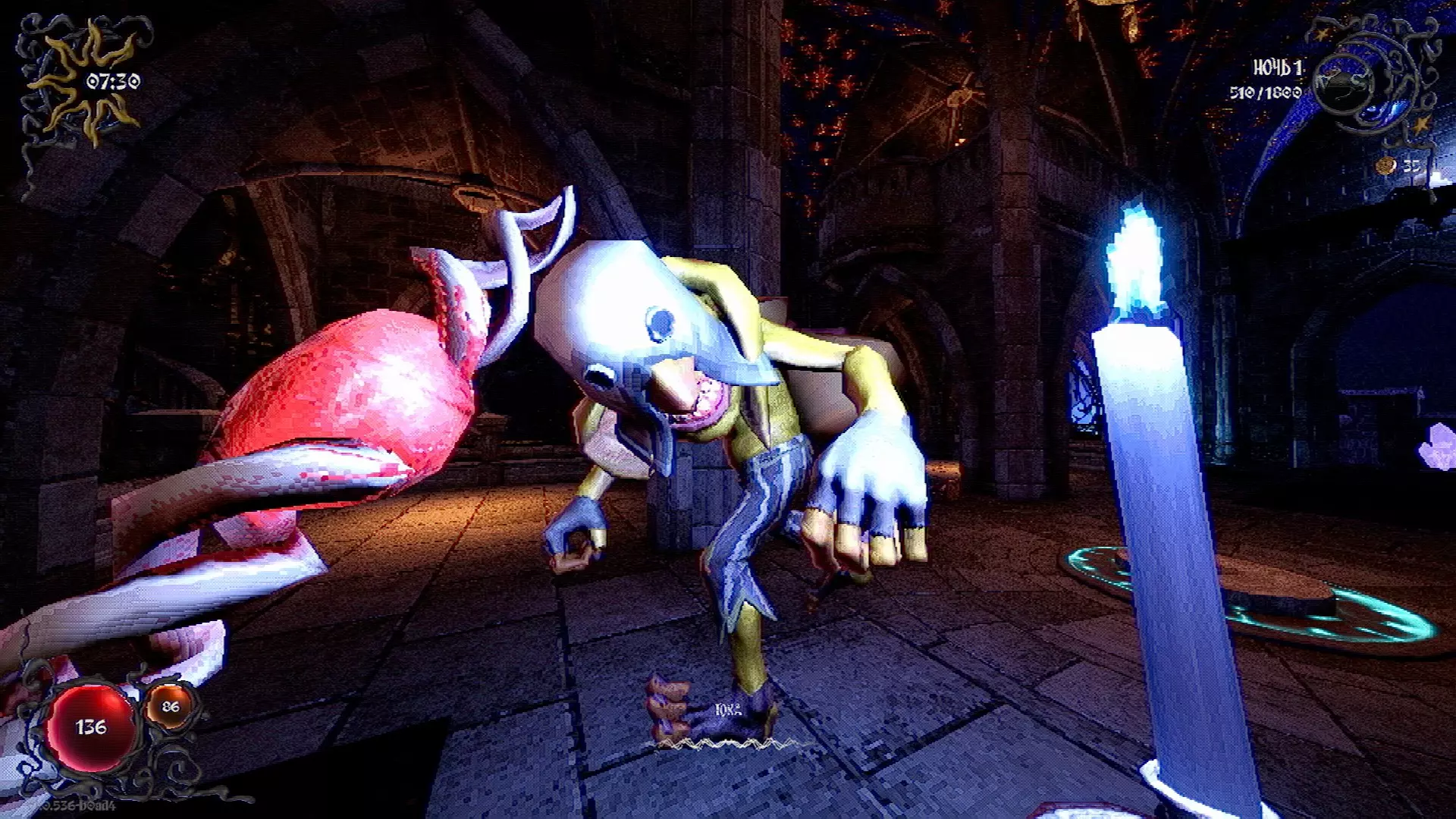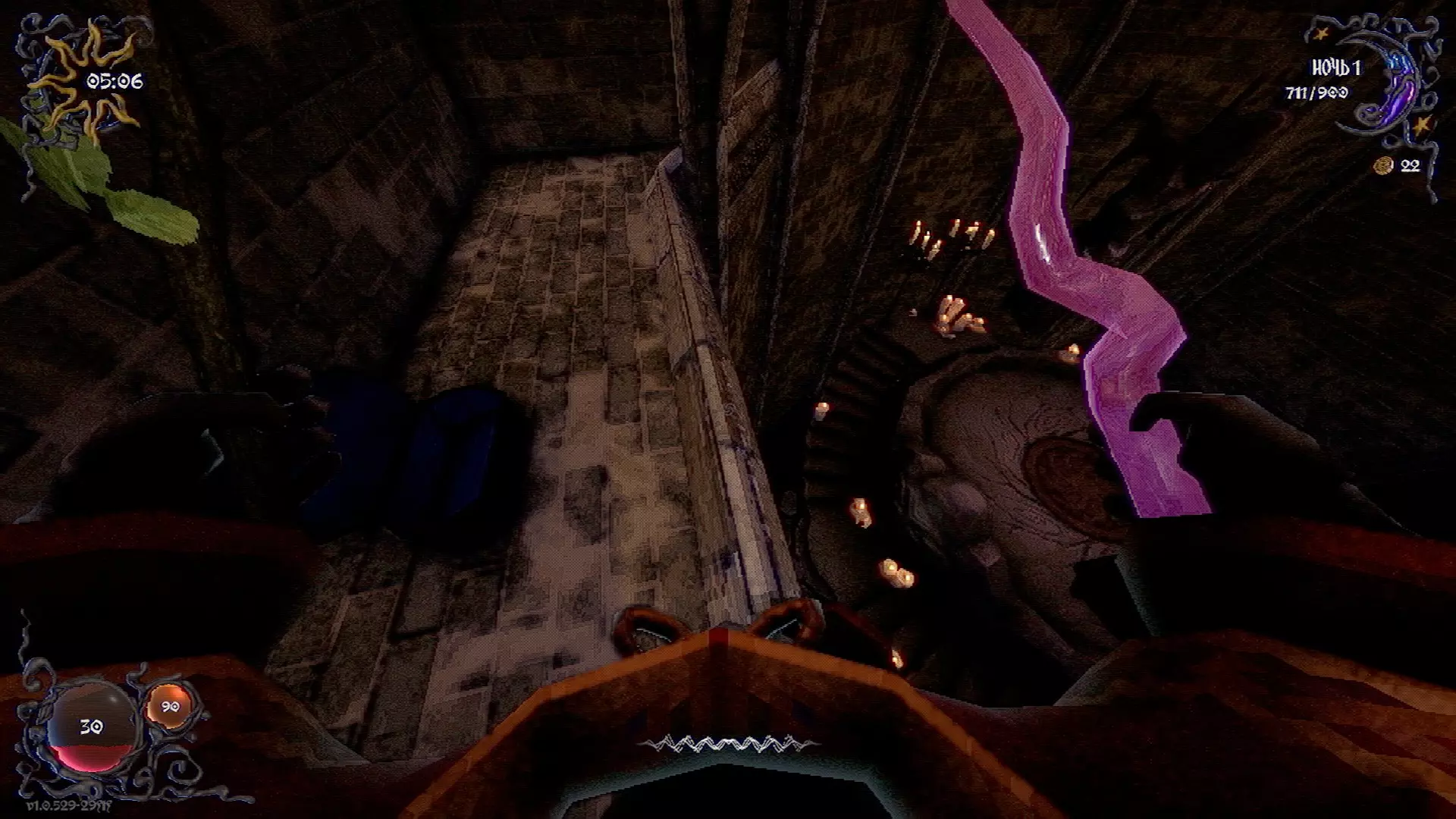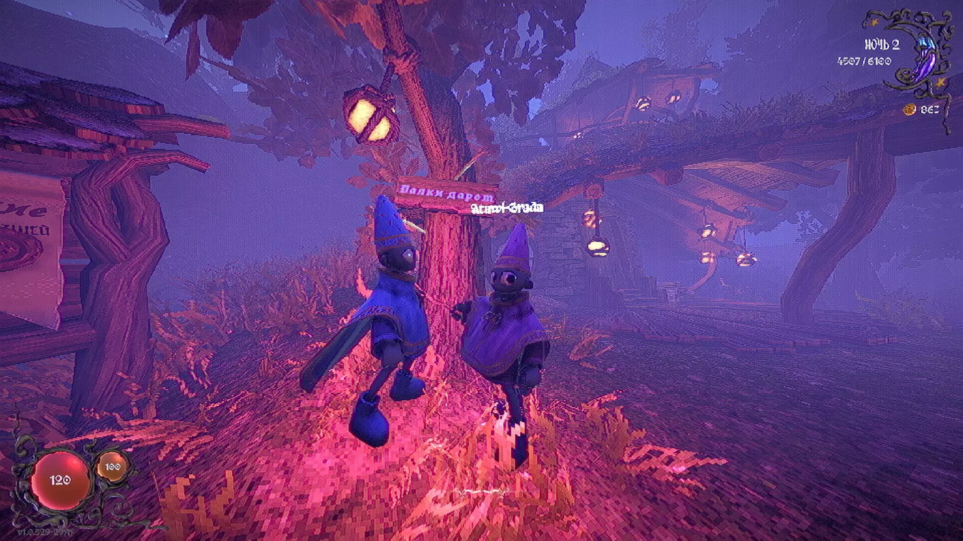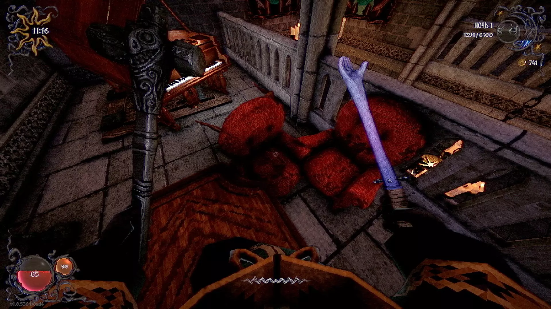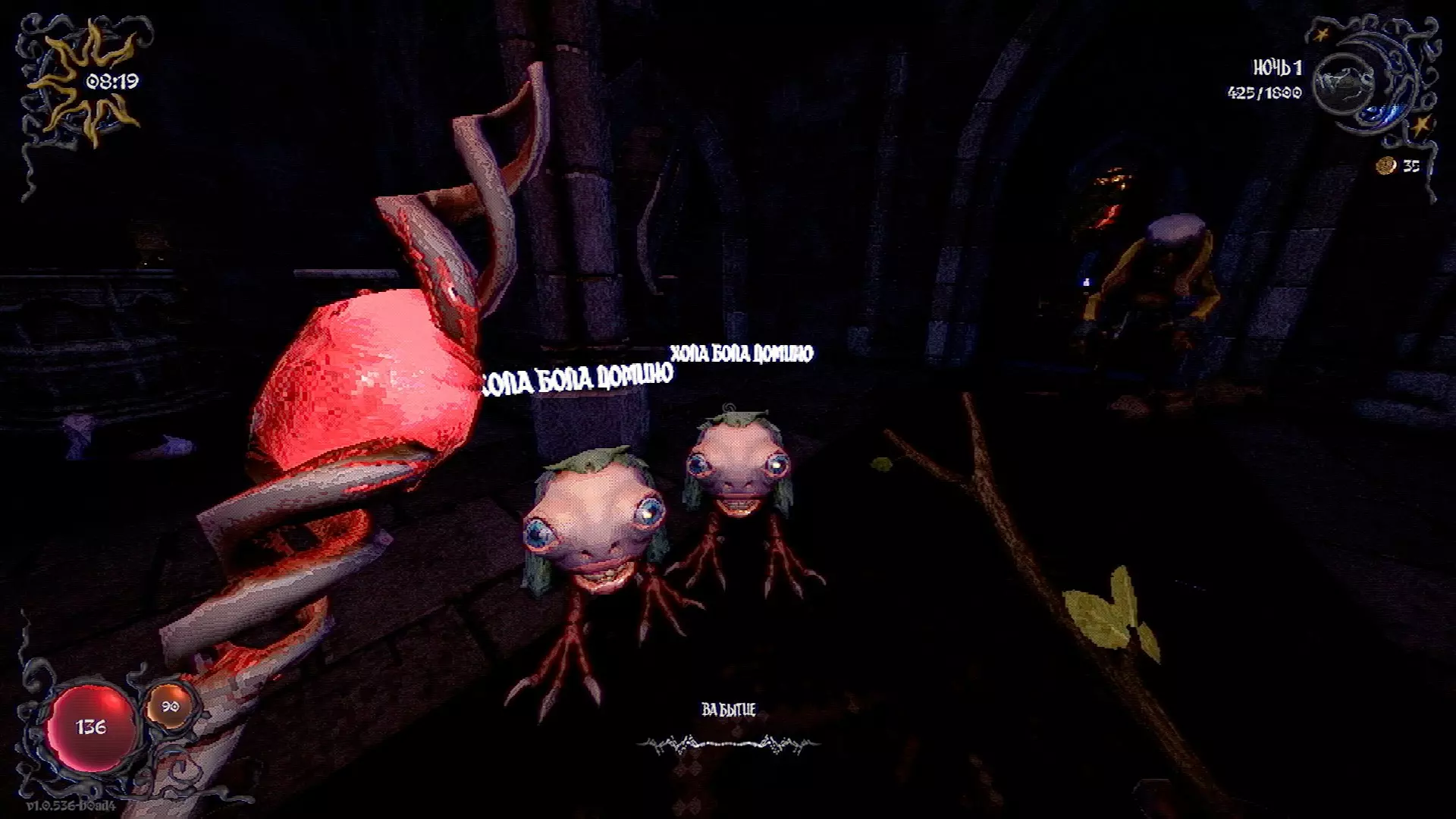 无法购买。通过在卫生间房间内完成试炼获得。 召唤锤子,锤子会造成伤害并破坏物体。 没有秘密。 补充说明:如果说“ХОРОШИЙ МАЛЬЧИК”,会触发抚摸动画。 在游戏文件中发现了用于火炬的“ФАКЕЛ”咒语,但未检测到其效果。此外,似乎还有火焰法杖的【火焰】法术,以及其他一些用于未知物品和法杖的法术。任务
