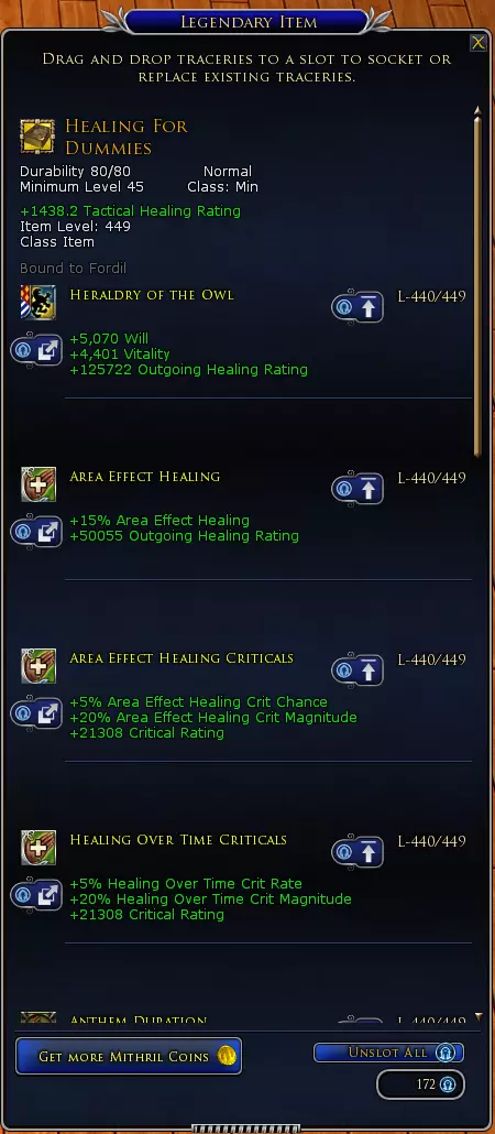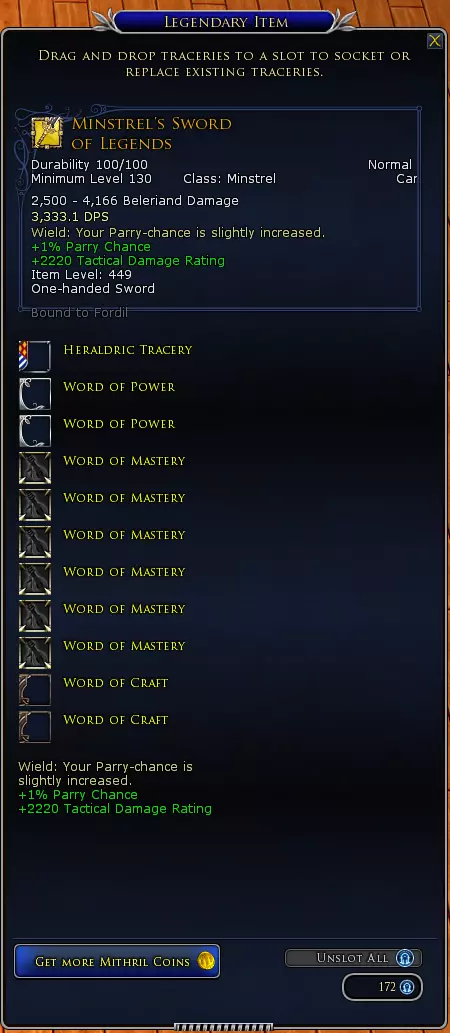 I have this Guide from Lotro Forums. I hope it will helpfull for all new players. Thx for the guide Thornelas / Mad Monkey[www.lotro.com] The guide on the forums can be found here[www.lotro.com]. 1. Table of contents + Introduction NOTE 1: Original guide can be found on https://www.lotro.com/forums/showthread.php?507561-GUIDE-New-to-LOTRO-hints-and-tips. NOTE 2: Most hyperlinks seem to be blocked here on Steam. Almost all of them lead to the LOTRO Wiki which is an innocent page. Refer to the page linked above if links don't work. Last updated on 26Jan2022 Introduction Basic game vocabulary Getting started Races Classes The game Exploring Kill enemies Quests & deeds PvP (end-game) Socializing Fishing Tasks Crafting General new player hints Ways to gather information Useful tips in the game Combat hints Making money UI settings Other stuff VIP benefits Housing Plugins Crafting Getting started How do I craft? Making progress Crafting guilds Legendary Items Your first Legendary Item Improving and customizing your LI Traceries: what are they? Traceries: how to use and upgrade Skirmishes Skirmish introduction Skirmish categories Skirmish mechanics Why skirmishes? Epic Battles EB introduction EB specializations Getting started with EBs Why EBs? 1. Introduction This is something I wrote with the intention of helping new players with some questions they might have. If you find anything that isn't correct or is incomplete in this guide, please let me know and I will edit it. Be warned, it’s a very, very long guide… 2. Basic game vocabulary (part 1) You may know some of these terms, others might be completely new to you... This is a small overview of commonly used terms and abbreviations (some are also used on other games or other parts of the internet). Adds: Enemies that attack you after you've begun a fight with another enemy. AFAIK: As far as I know Aggro (aggravation): Can be used as a verb, meaning alerting an enemy so it will start to attack you, or it can be used as a noun, meaning the threat that you are to an enemy in a fight. AH: Auction hall, a location in game where players can list items for sale and buy from each other. Alts /toons: Other characters owned by the same player. AoE attacks: Area of effect attacks that damage multiple foes within a certain range. Bear: Beorning, character class. BoA: Bind on Acquire, items that will be bound to your character as soon as you acquire them, which means they can’t be traded or sold to other players or characters. BoE: Bind on Equip: unlike BoA items, these will only be bound to your character after equipping them. BoV: Blessing of the Valar: a character upgrade bought from the store which will instantly elevate your character to either lvl 50 or lvl 95. Box runs: Running the weekly featured instance. BPE: Block, parry and evade ratings, passive attributes indicating the character’s proficiency at blocking, parrying or evading incoming attacks. Buff: an effect placed on a character (either by the character itself or by an ally) which boosts the character’s combat abilities. Burg: Burglar, character class. Cappy: Captain, character class. Champ: Champion, character class. Crit: Critical hit / critical success ratio, indicating either an attack which dealt more damage / healed more than the regular amount, or the rate at which a character can deal critical hits. Deconstruct: Certain items can be deconstructed by using the Flame of Ancalamír on them. This yields a currency-type item which can be used to barter or craft more valuable items in turn. Debuff: An effect placed on a character (either by the character itself or by an enemy) which hinders the character’s combat abilities. DoT: Damage over time, this will inflict a certain amount of damage every x seconds. DPS: Damage per second, this can indicate the players or classes that deal most of the damage in a fellowship, or it can indicate the dps-value of a weapon. EB: Epic Battles, also known as Big Battles. A special type of instance. See section 10 for more info. F2P: Free to Play, an account status indicating that the player has not spent any real life money on the account. Fellowship: Temporary group of up to 6 people, generally formed to do game content together which can’t be done solo. A fellowship can be converted to a raid which can hold up to 24 players. The monster play version of a fellowship is simply called “group”. FI: Featured Instance: every week a new instance will be “featured” which means they drop special rewards upon completion. The schedule of which instances are included in this rotation change with updates to the game every few months. FM: Fellowship maneuver, also referred to as conjunctions. These sometimes occur when you're fighting enemies while in a fellowship. The enemy will be stunned for about 10 seconds, and you will be able to choose between 4 options: a red, blue, green or yellow circle. When the enemy recovers from his stun, all fellowship members will perform a fellowship maneuver. The result depends on the combo that is made (more info later on). Note that creep FMs (warband maneuvers) are completely different from freep FMs. Founder: An account status indicating that the player pre-ordered the original Shadows of Angmar game in 2007. These players were allowed to participate in the beta testing, had a lower pricing rate for both monthly and lifetime VIP status and received a few minor bonuses exclusive to Founders. In 2010, Founders automatically became VIPs (as long as they either paid their subscription or bought a lifetime account), but some people still refer to the Founder title. GA: Garth Agarwen, a small instance cluster at the end of the Lone-lands questline at level 32, consisting of The Arboretum, Barrows and Fortress. GB: Great Barrow, one of the first instance clusters many people encounter as it’s located in the Barrow-Downs of Bree-Land. There are 3 instances (The Maze, Thadúr and Sambrog – or Sammy) which scal