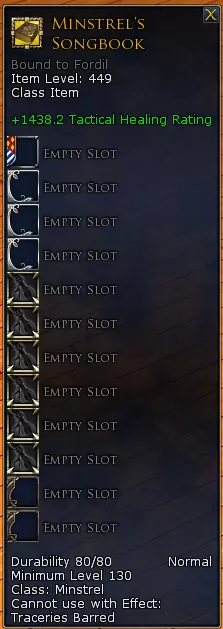 添加铭文并升级至物品等级440后的重铸物品的传奇物品面板:
