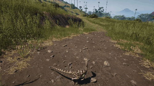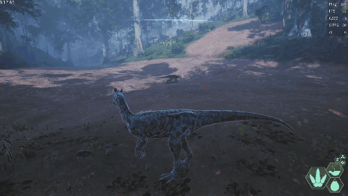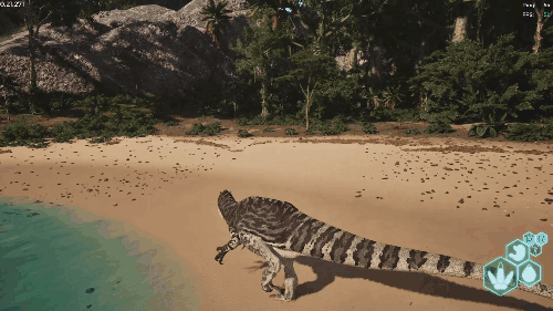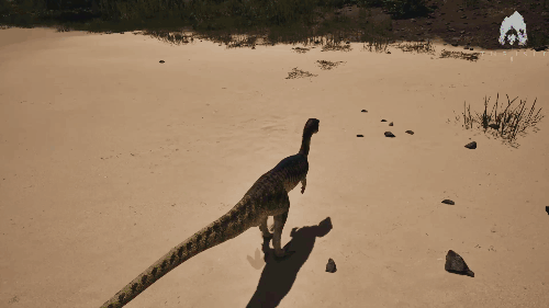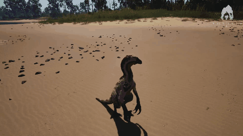 消耗耐力进行攻击。 可对体重320kg以下的生物施加击倒效果。 静止时不消耗耐力。 效果倍率 ・伤害倍率:咬合力的3倍(300%) ・控制上限(击倒):自身重量的60% 生存提示 ・营养耗尽会导致移动速度下降,容易被其他生物追上,因此维持营养非常重要 ・转向性能较差,逃入复杂地形十分危险 ・具备一定的坠落抗性,但切勿过度自信 战斗提示 ・使用Alt键的踢击可对迅猛龙造成畏缩效果 ・踢击会消耗耐力,需要注意管理 AI恐龙: 美颌龙/Compsognathus