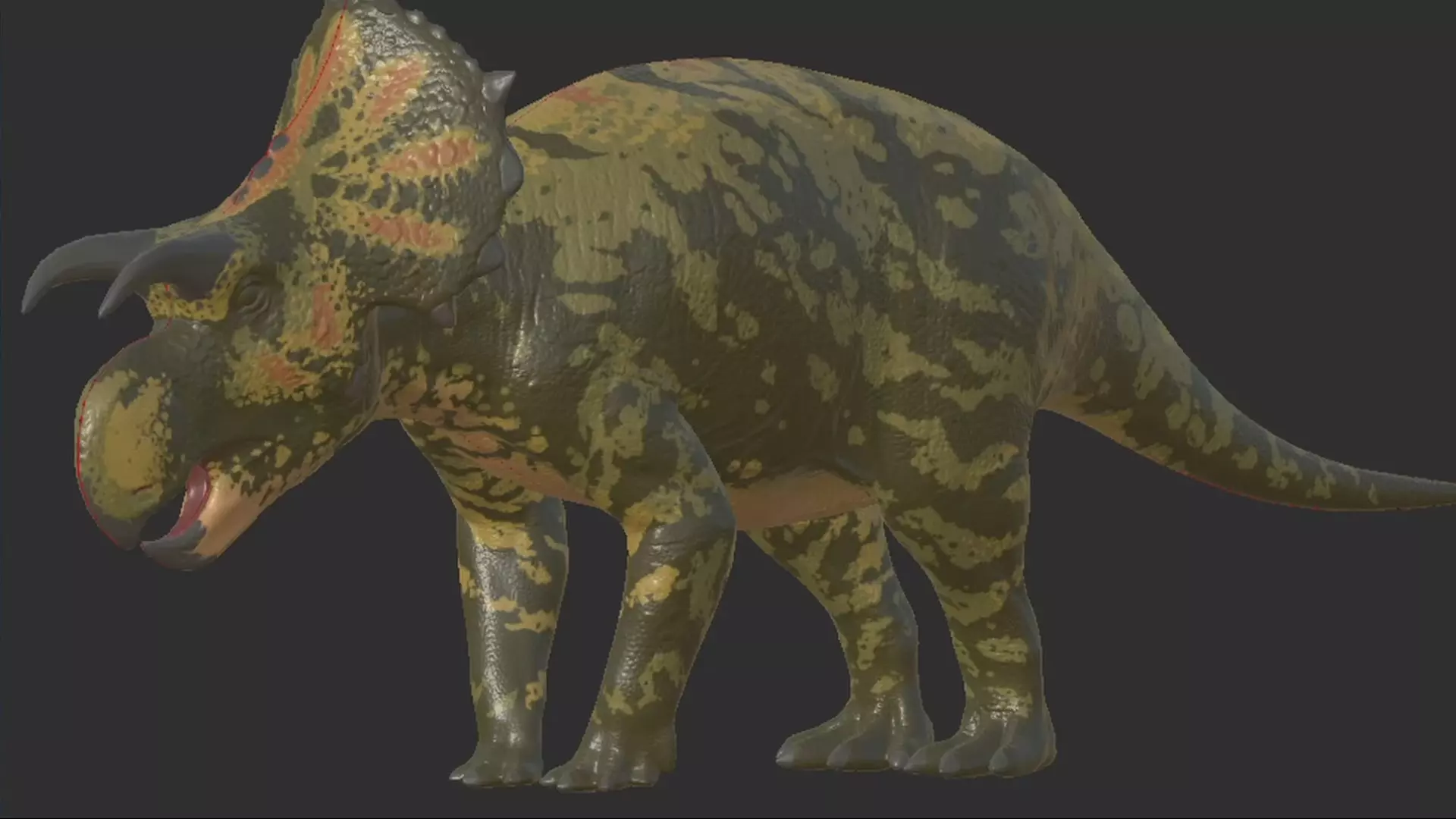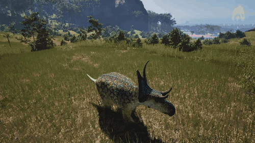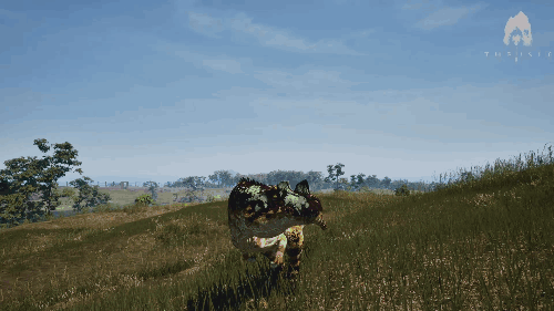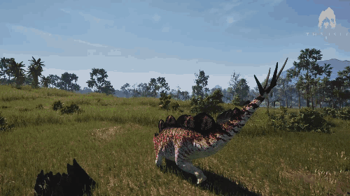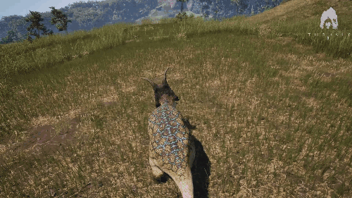 Alt+右键可使用 后摇非常大 可将目标击倒至1600kg 效果倍率 ・伤害倍率:Biteforce的2.9倍(290%) ・控制上限(击倒):自身重量的100% ・控制上限(击退):自身重量的150% 生存提示 ・出血抗性不高,需要注意出血管理 ・喝水声音较大,需留意 ・脚步声相对于中型生物来说较大,容易被发现 战斗提示 ・尾击后摇大,连续使用有危险 ・对付小型生物建议以前脚攻击为主 三角龙/Triceratops