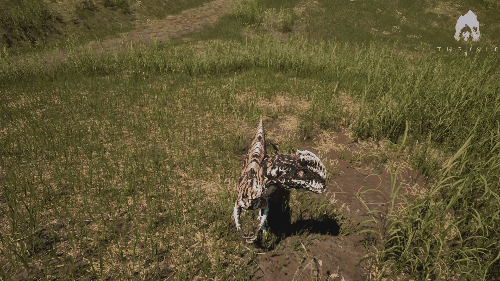 右键点击发动(消耗25%耐力) 从亚成年体状态解放毒素,贴近对手并注入毒素。 解除贴近状态后,当迅猛龙发出叫声时毒素会发作。 毒素等级可通过嗅觉确认 ・1级(淡绿色轻微发光) ・2级(深绿色轻微发光) ・3级(紫色轻微发光) 毒素效果 ・1级:轻度视野模糊、轻度听觉障碍、轻度出血抗性降低(效果时间:25秒) ・2级:中度视野模糊、中度听觉障碍、中度出血抗性降低(效果时间:30秒) ・3级:重度视野模糊、重度听觉障碍、嗅觉障碍、重度出血抗性降低(效果时间:45秒) 效果倍率(基础倍率:2.35倍) ・伤害倍率(1阶段):基础倍率的1.3倍(130%) ・伤害倍率(2阶段):基础倍率的1.7倍(170%) ・伤害倍率(3阶段):基础倍率的2.85倍(285%) 生存提示 ・无法隐蔽身体的沙滩和岩石地带非常危险 ・战斗时会消耗大量耐力,因此需要管理耐力 ・食物消耗较快,需要进行管理 战斗提示 ・使中毒状态加剧后,造成的伤害和出血效果会变为3倍 ・中毒的持续时间无法延长,因此在中毒效果发动期间应尽量持续贴身攻击 ・下坡时贴身攻击时,为了避免越过对手,可以通过向下看的方式减少越过的情况 霸王龙/Tyrannosaurus