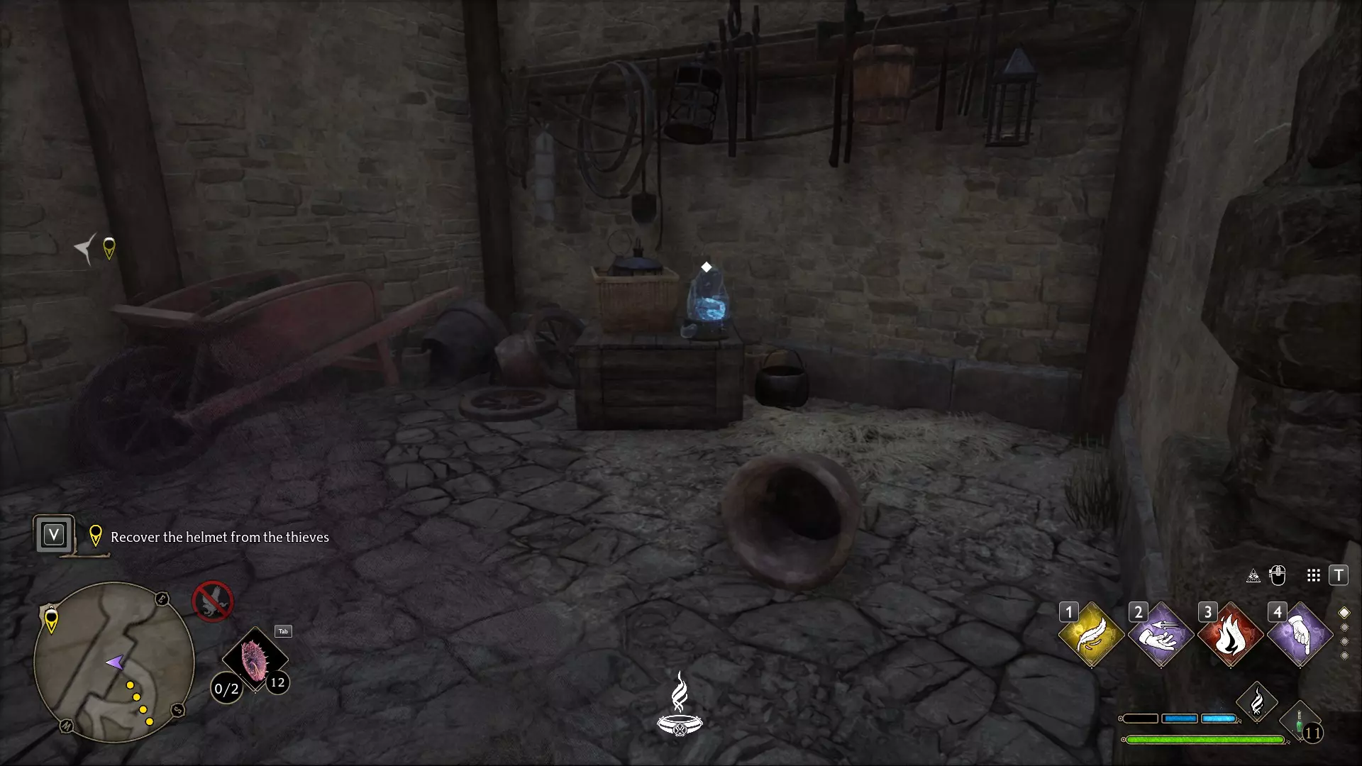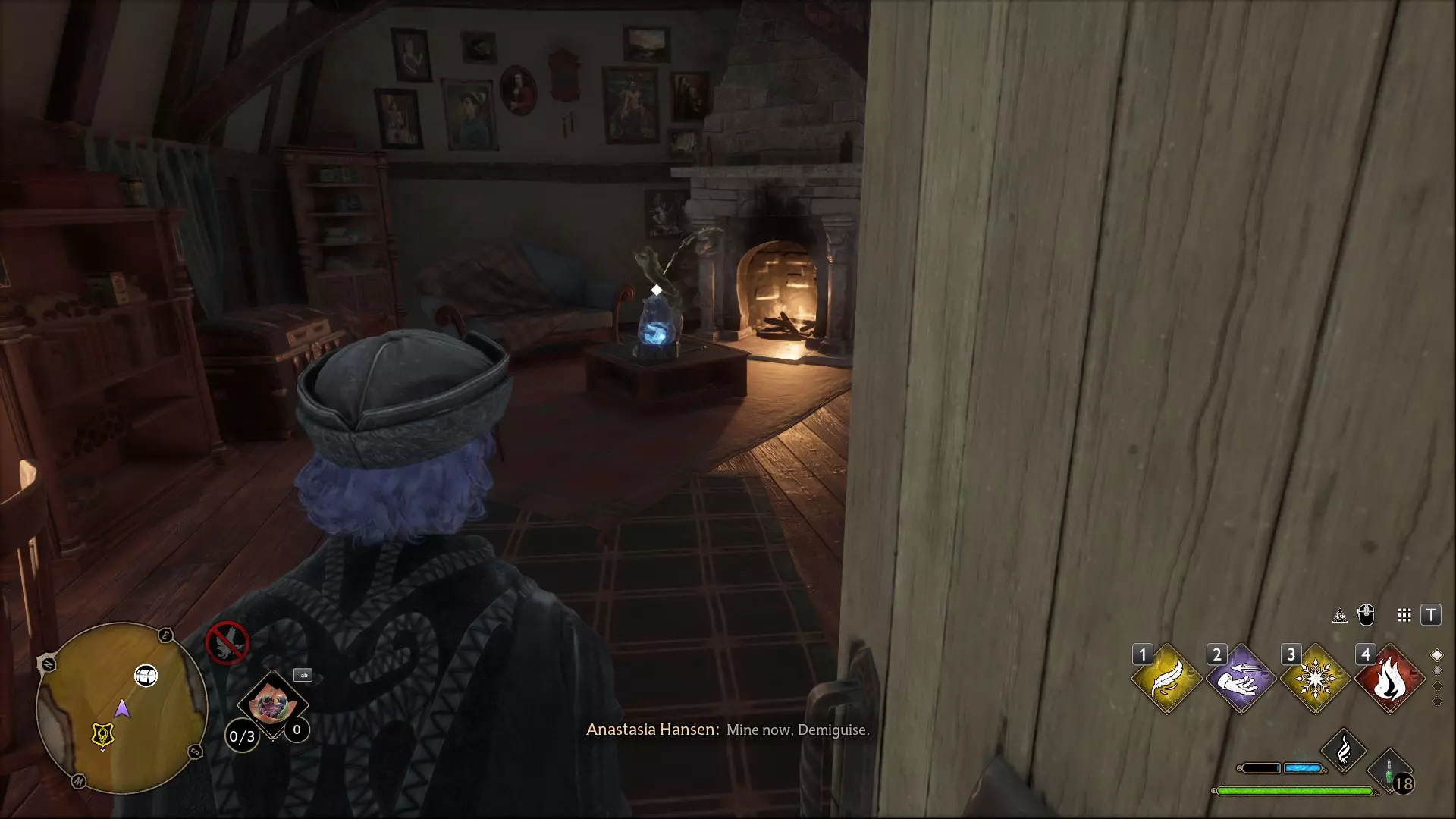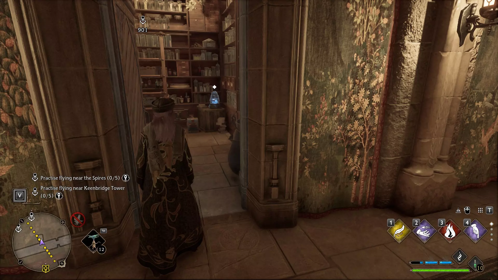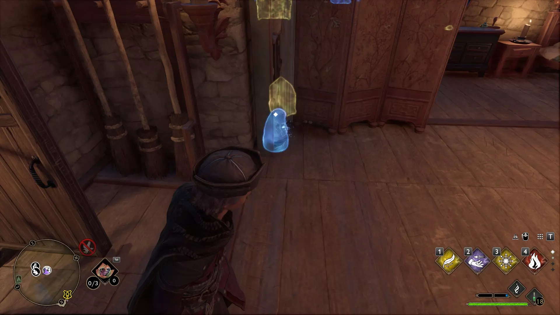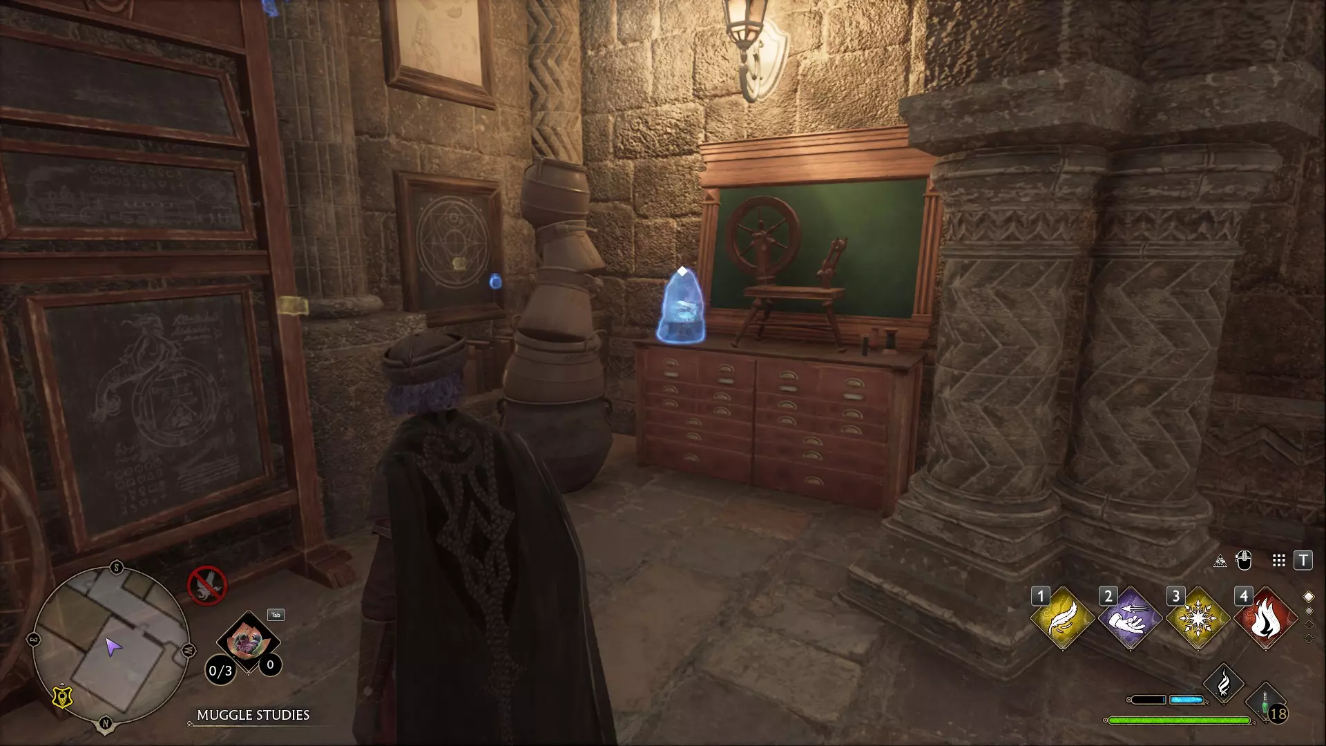 魔药课教室:不要进入教室,向左走下螺旋楼梯并沿着走廊前进。左侧会有一个带锁的房间,【隐形兽】就在里面。需要【开锁咒】1级和2级才能进入。