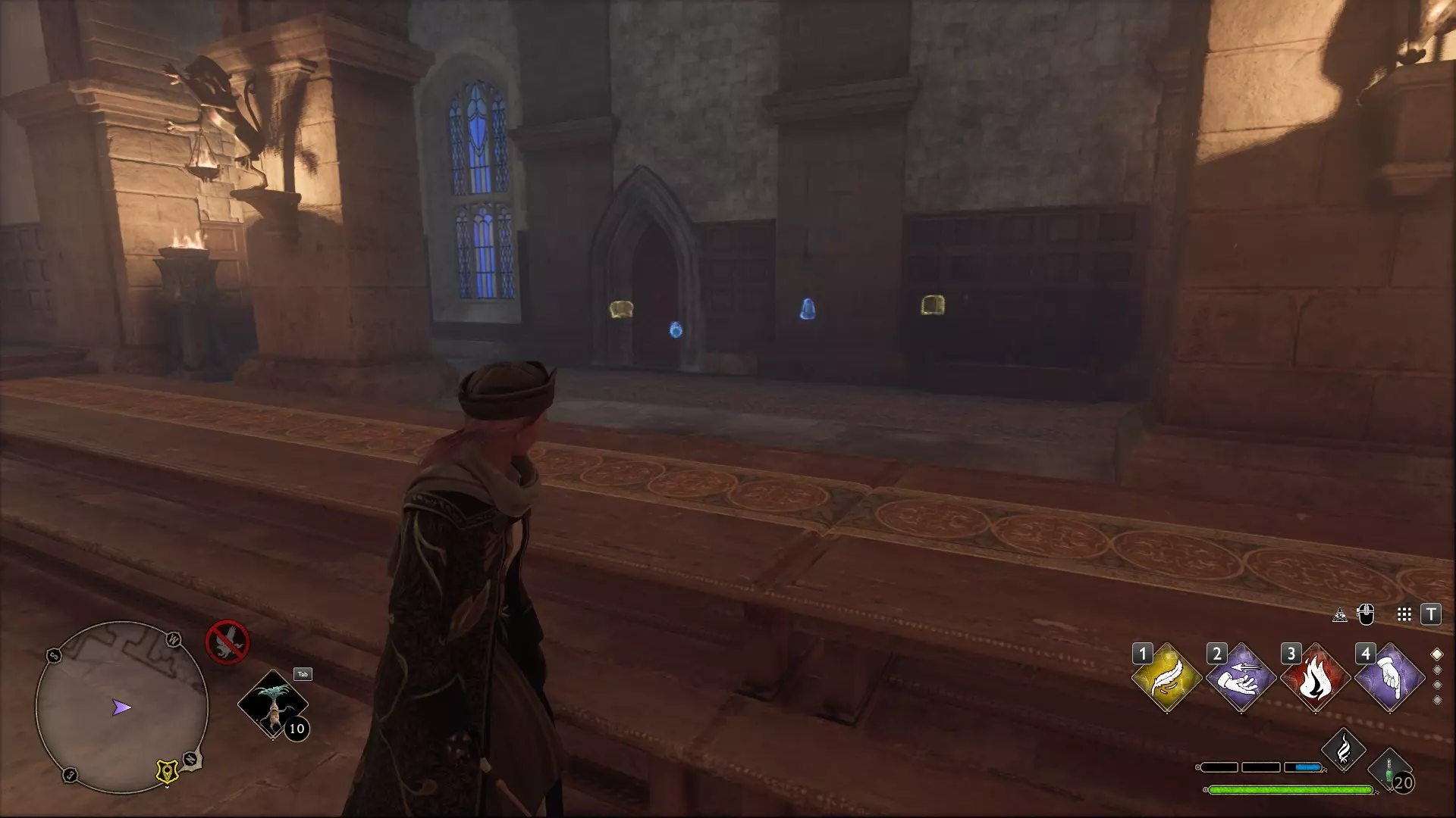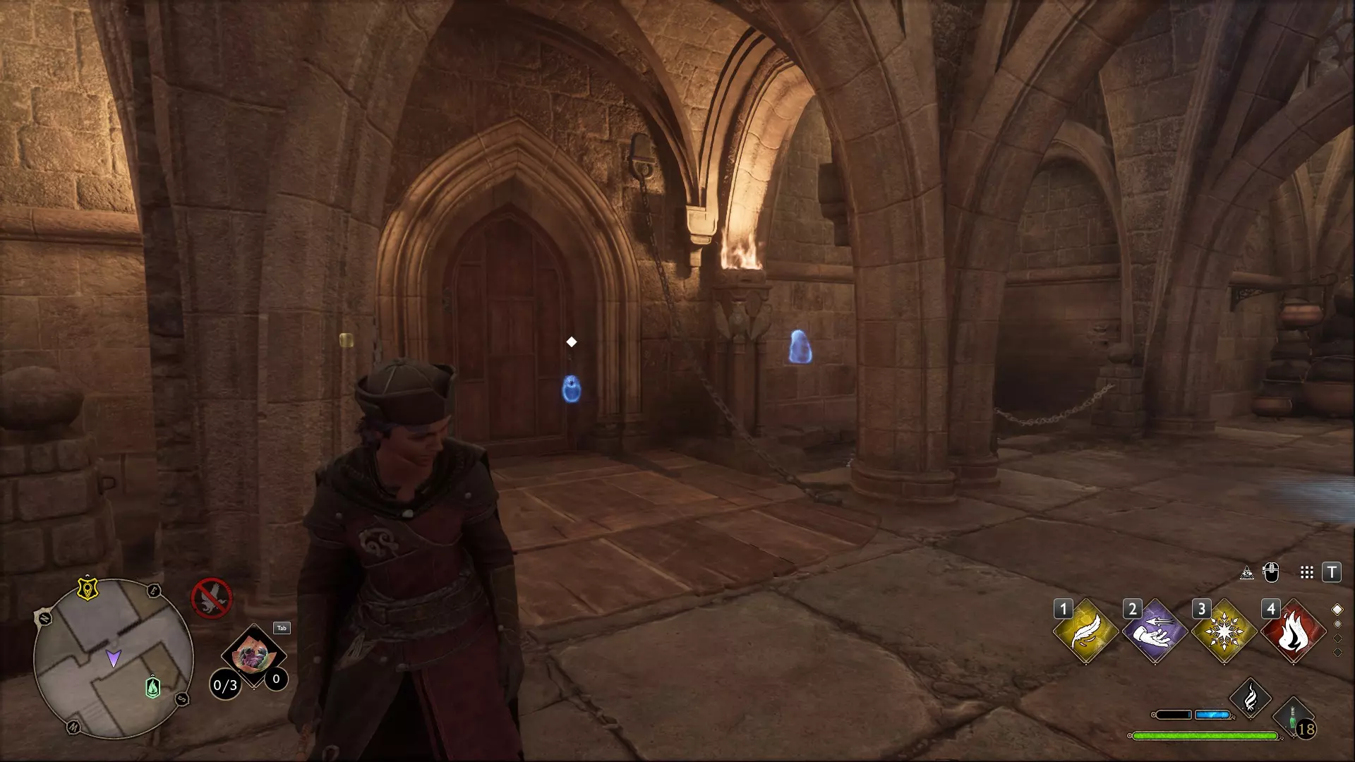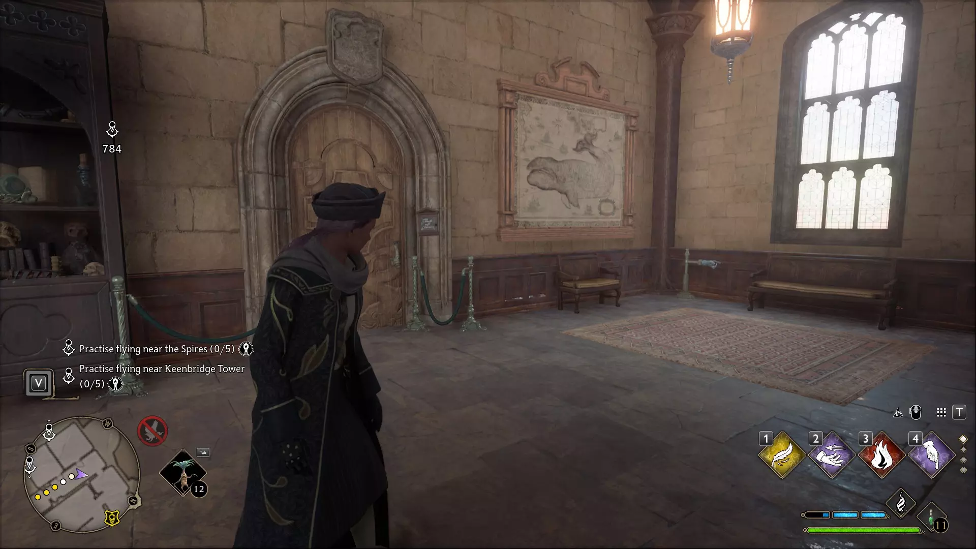 变形学教室/地牢:作为斯莱特林学生,你或许能更快到达那里,但对我来说,最快的路线是通过飞路粉前往变形学教室,向右走并穿过左侧第一扇门,直走到楼梯处并一路向下。继续沿着楼梯走,直到看到沉睡的龙雕像,向右转,不久后你需要穿过的那扇通往雕像的门就在你的左手边。进入需要【阿拉霍洞开】一级解锁。