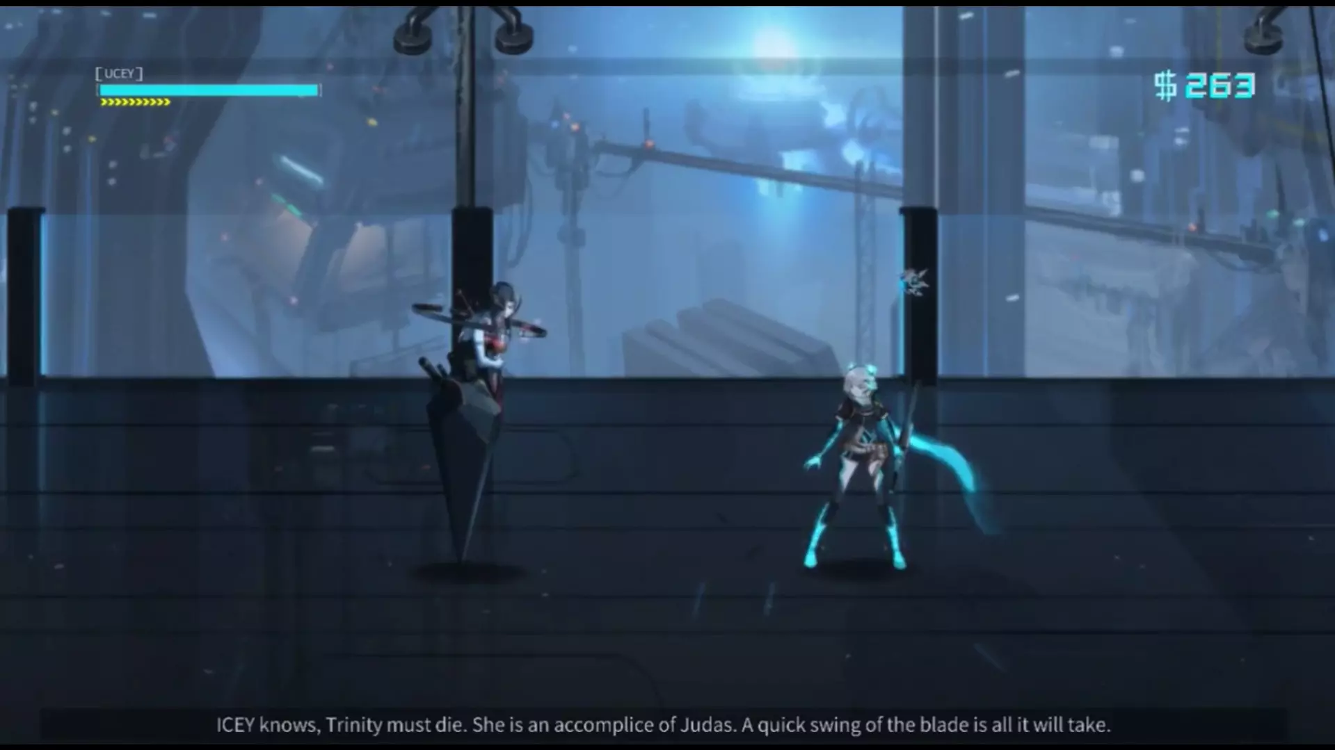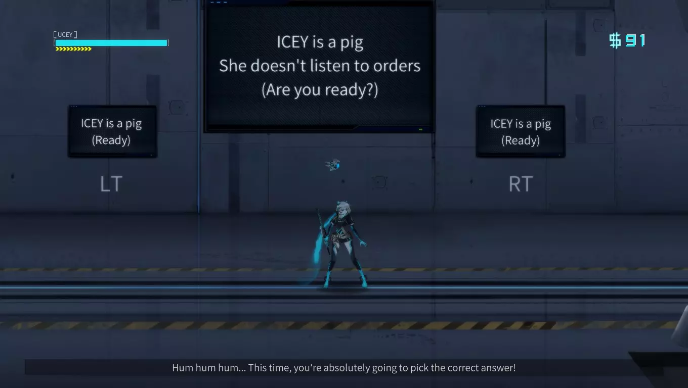 在最终战斗前选择【未准备好】 当我们到达【命运之厅】——也就是前往对付犹大前的房间时,旁白会询问我们是否准备好。此时要一直选择【不去】,直到旁白不耐烦并改口说“ICEY is a pig(准备好了)”。这时不需要进行任何操作,只需继续等待即可,哈哈。