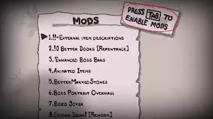 如果它已打开,你需要将其关闭。要关闭调试控制台,请在搜索栏中输入“我的游戏”,找到《以撒的结合:忏悔》,打开options文件并查找“EnableDebugConsole”值。如果其数值为1,则表示控制台已启用,将1改为0即可关闭。如果操作正确,控制台就会被关闭,你可以在击败妈妈后将0改回1重新启用它。关于调试控制台问题已有解决说明,而模组问题则更为简单:您只需启动游戏,选择文件,打开模组菜单,然后禁用所有模组即可。