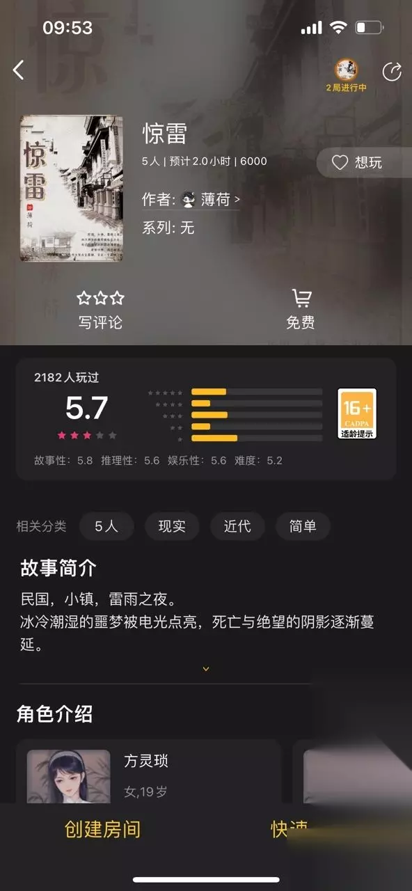 剧本信息 剧本名:惊雷 剧本题材:近代、现实 剧本难度:简单 作者:薄荷 人物简介 方灵琐 女 19岁,皮肤苍白,文静沉默。方家小姐。 沈梦玉 女 22岁,温柔沉稳,气质典雅。方家夫人。 赵长康 男 22岁,身体瘦弱,文质彬彬。投宿的旧友。 江从云 男 24岁,器宇轩昂,阳光帅气。投宿的旅人。 江采萍 女 22岁,美貌妖娆,放荡不羁。投宿的旅人。