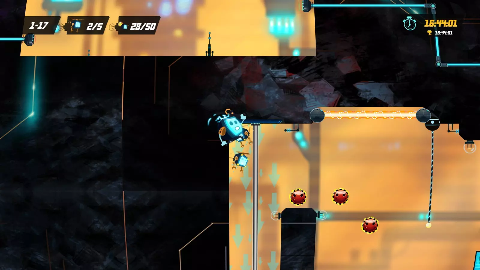 这是一个轻松进行助推跳跃和切割的好地方。 第一章 - 第17关。 你最终会到达这个地方,走到滑杆的左侧,用重物或胶带之类的东西压住跳跃键,进行无限墙跳/滑杆跳,…