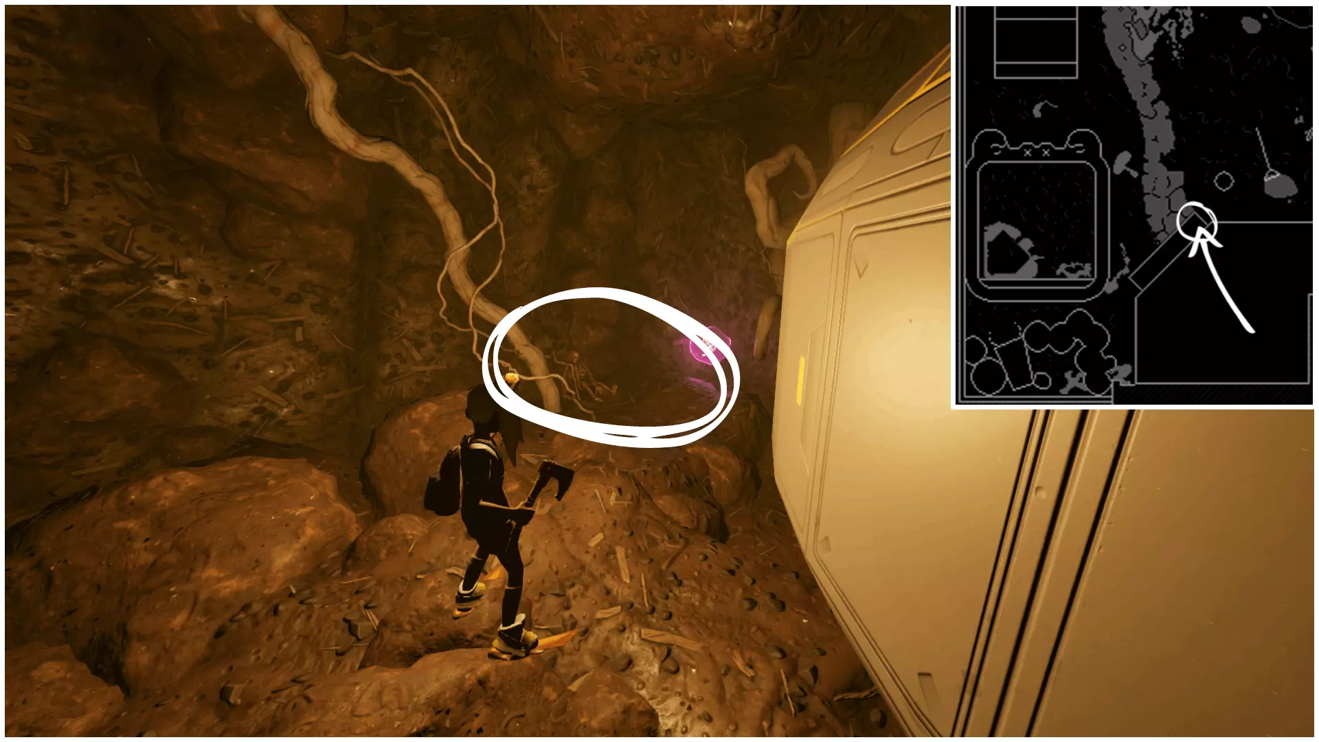 雷神吊坠 位于树桩倒下部分的裂缝内,靠近其尖端的中间部分 ‣ 吊坠