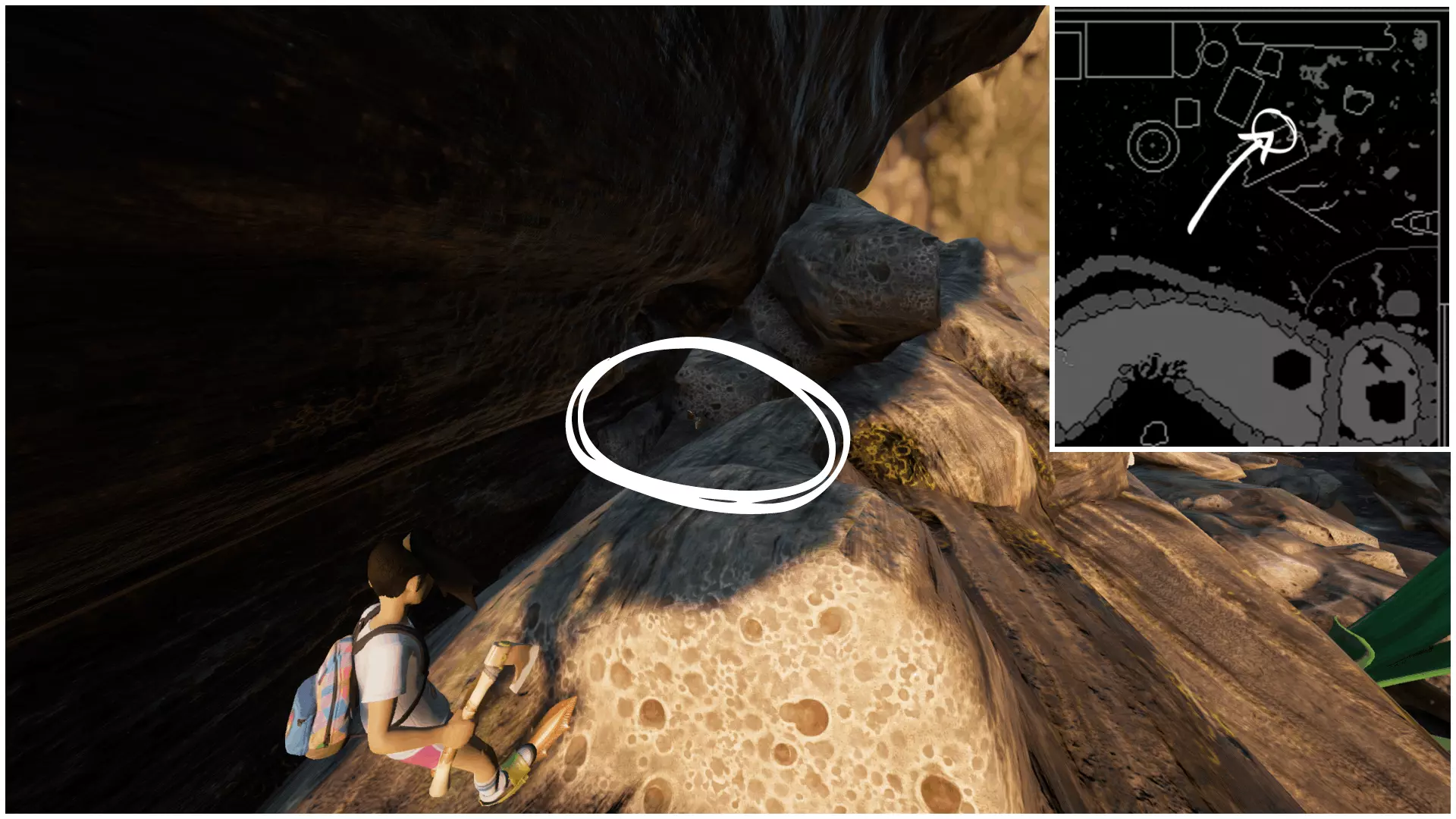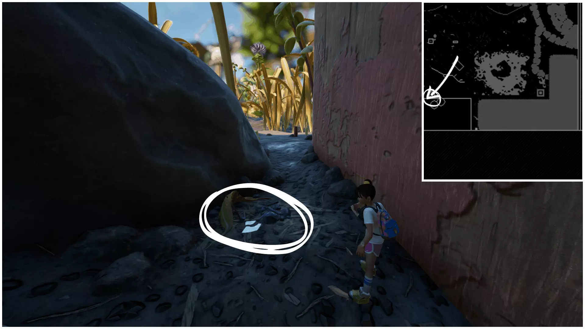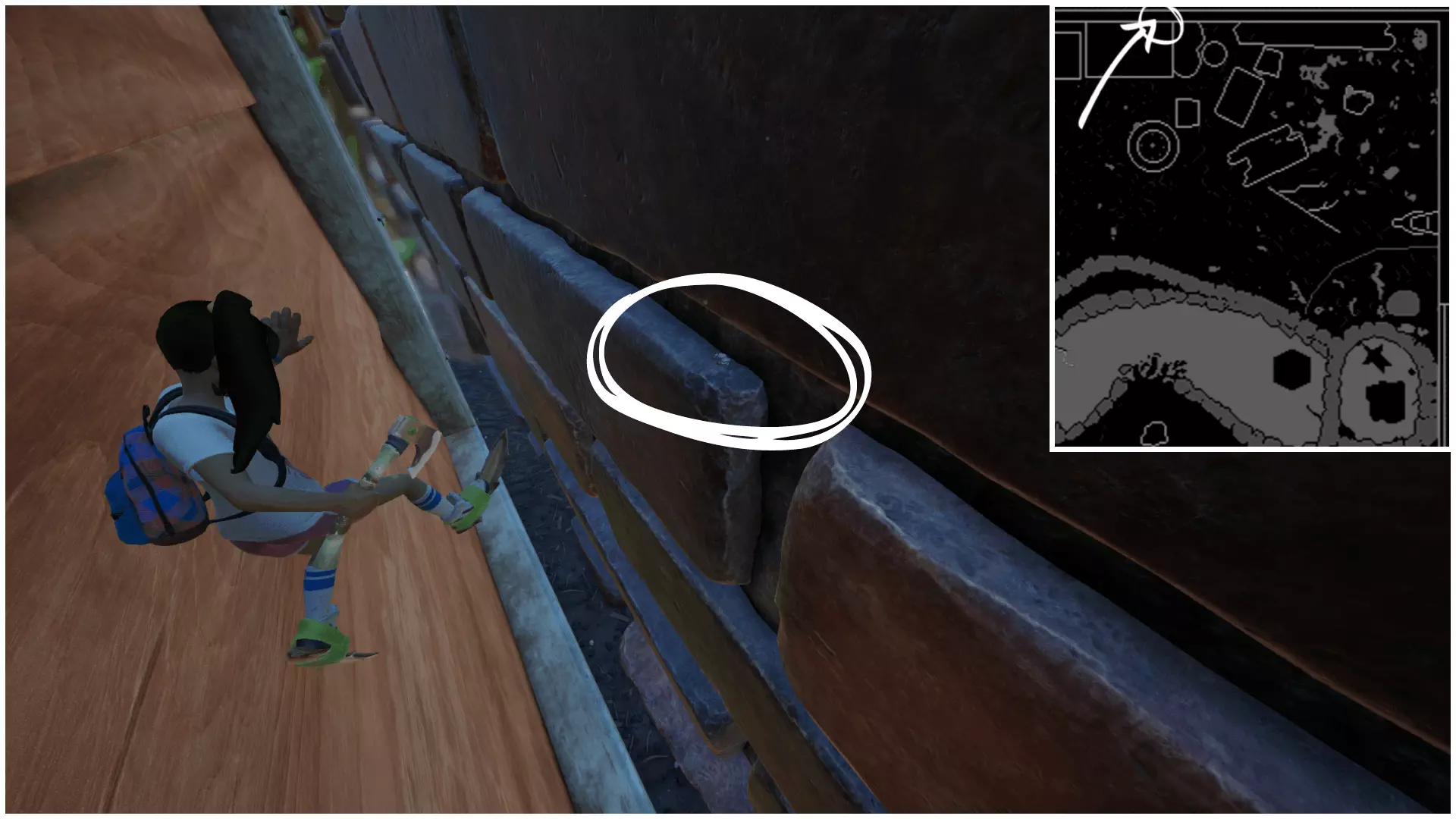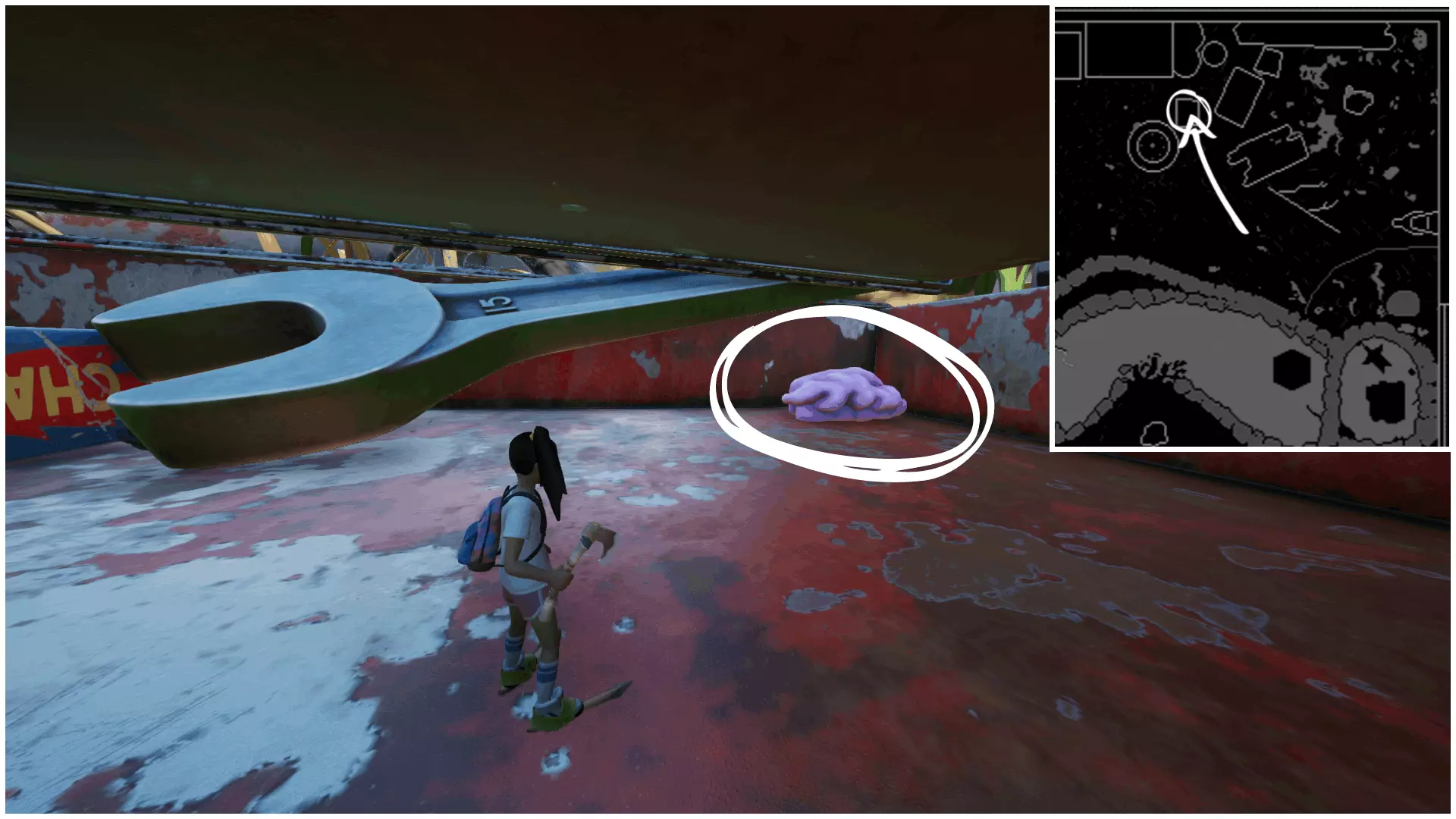 Deuces Sign(两点标记)位于耙石角和泼洒的油漆桶之间的门廊下方。在该区域,它在一簇巨石后面。 ‣ Deuces