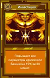 【投资】消耗30金币,提升军队或防御塔所有属性15%。当贪婪国王掉落金色卡牌时,每次都需要使用此卡牌。即使未掉落,也需更换卡牌直至其出现。