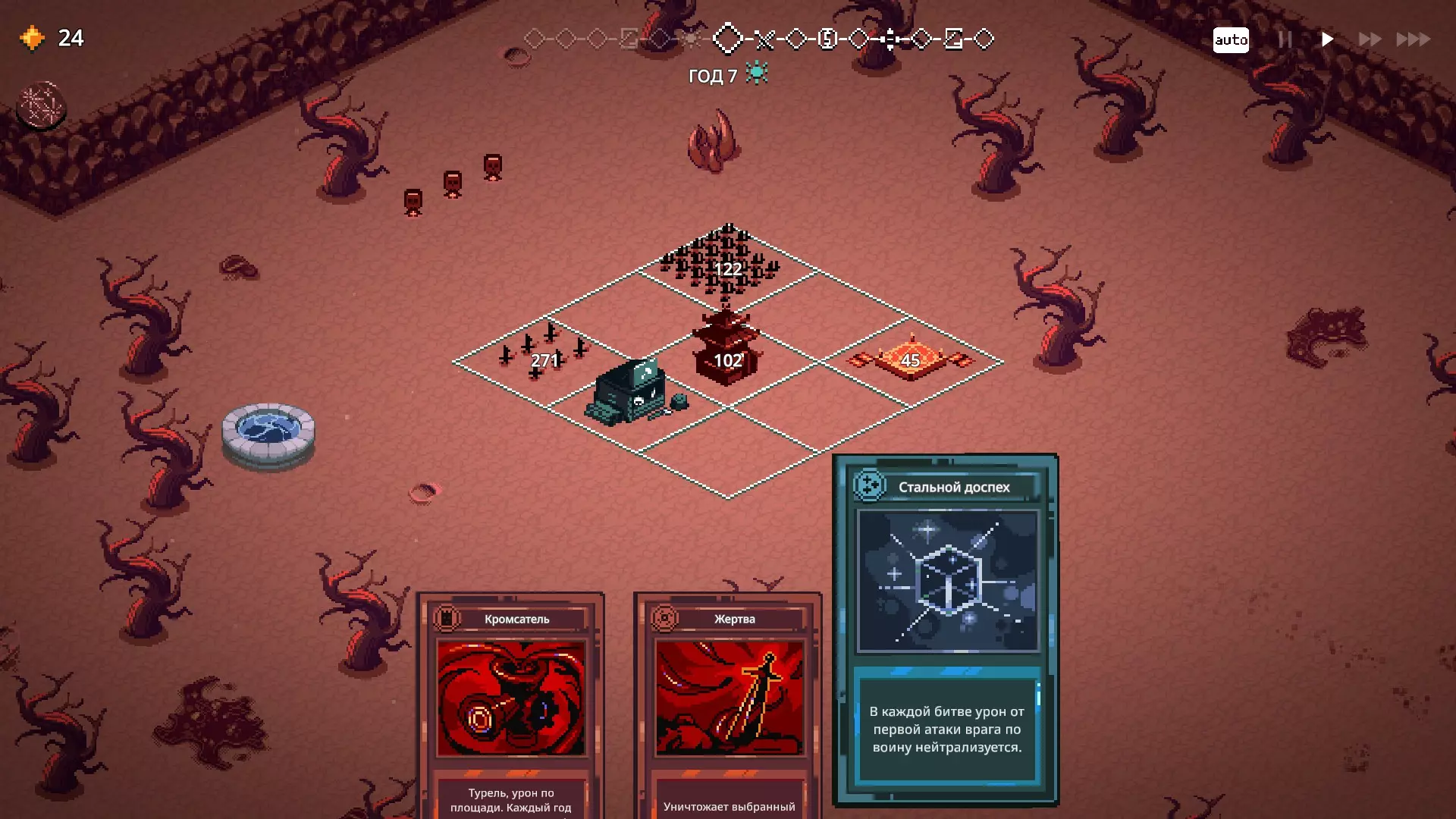 X1+ 神殿:随机提升随机区域的参数10%。如果运气好的话可以选择。我们只有两个可以升级的区域,分别是爆破手和塔,所以爆破手被升级的概率很高。额外卡片