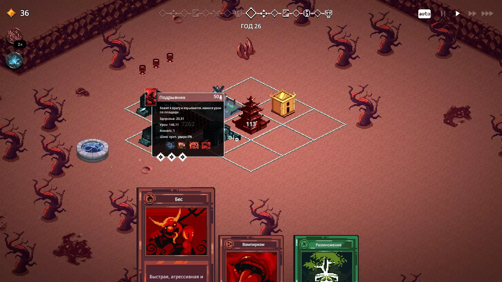 Х1 爆破兵 冲向敌人并自爆,造成范围伤害 是整个策略的基础,需要放置在能够从各个方向进行升级的位置。在游戏初期,需要用其他部队进行支援,直到爆破兵完成升级。
