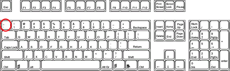 以下是我个人认为游戏中最实用且基础的一些指令列表。 如何打开控制台? 要打开控制台,我们需要按下字母键上方、数字1键左边的那个按键,而不是键盘右侧数字小键盘上的按键。