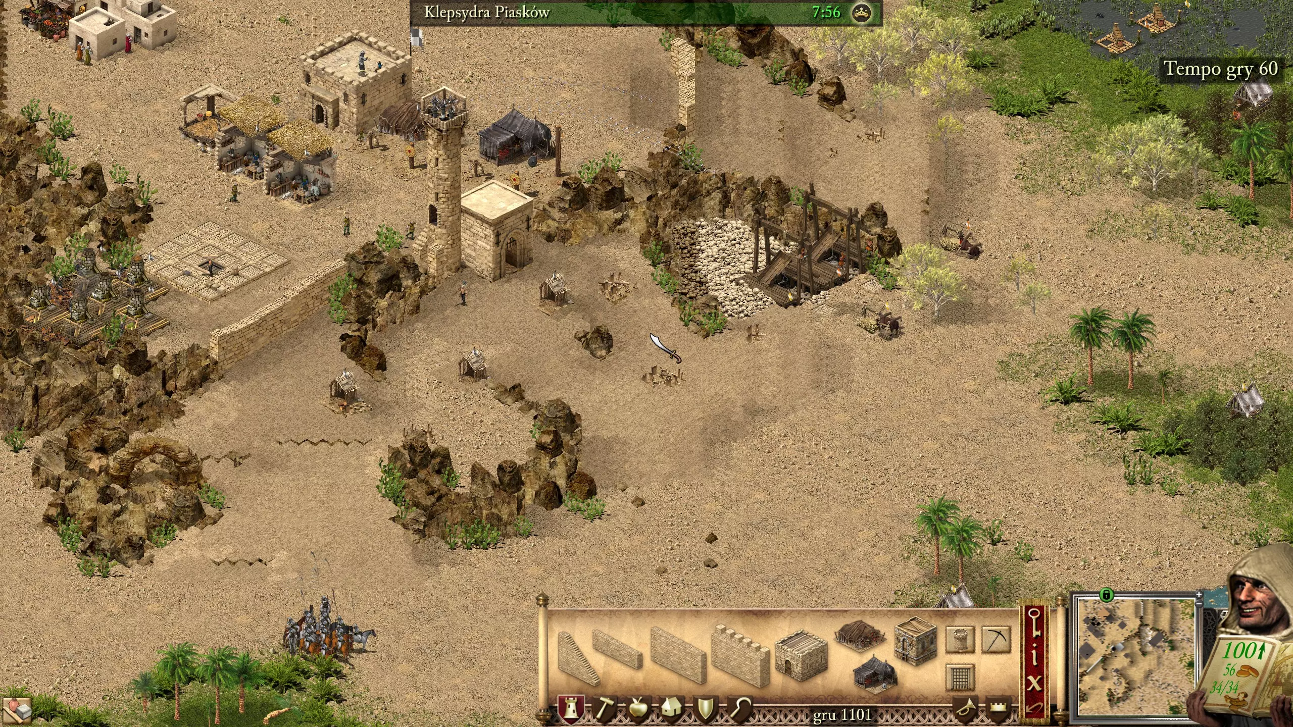 这个任务出现在《要塞:十字军东征高清版》的演示版中(但略有不同)。你将面对卡希娜、哈里发、宝石、游牧民和哨兵。如果你按正确顺序完成这些试炼,这应该是你第一次遇到哨兵。他是警长的强化版本。 该怎么做,以及如何开始? 为了节省时间,建议将仓库移到靠近铁矿的位置。这里的资源并不多。建造两到三个小麦农场,并购买啤酒以获得声望加成,这样应该就足够了。