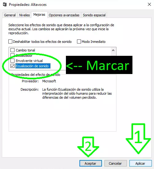 重要提示:如果未显示【改进】选项,可能是因为你的主板未安装最新的声卡驱动程序。为此,请确认你使用的主板型号,并安装最新的声卡驱动。祝你好运。 点击【应用】,然后点击【确定】。 操作完成!