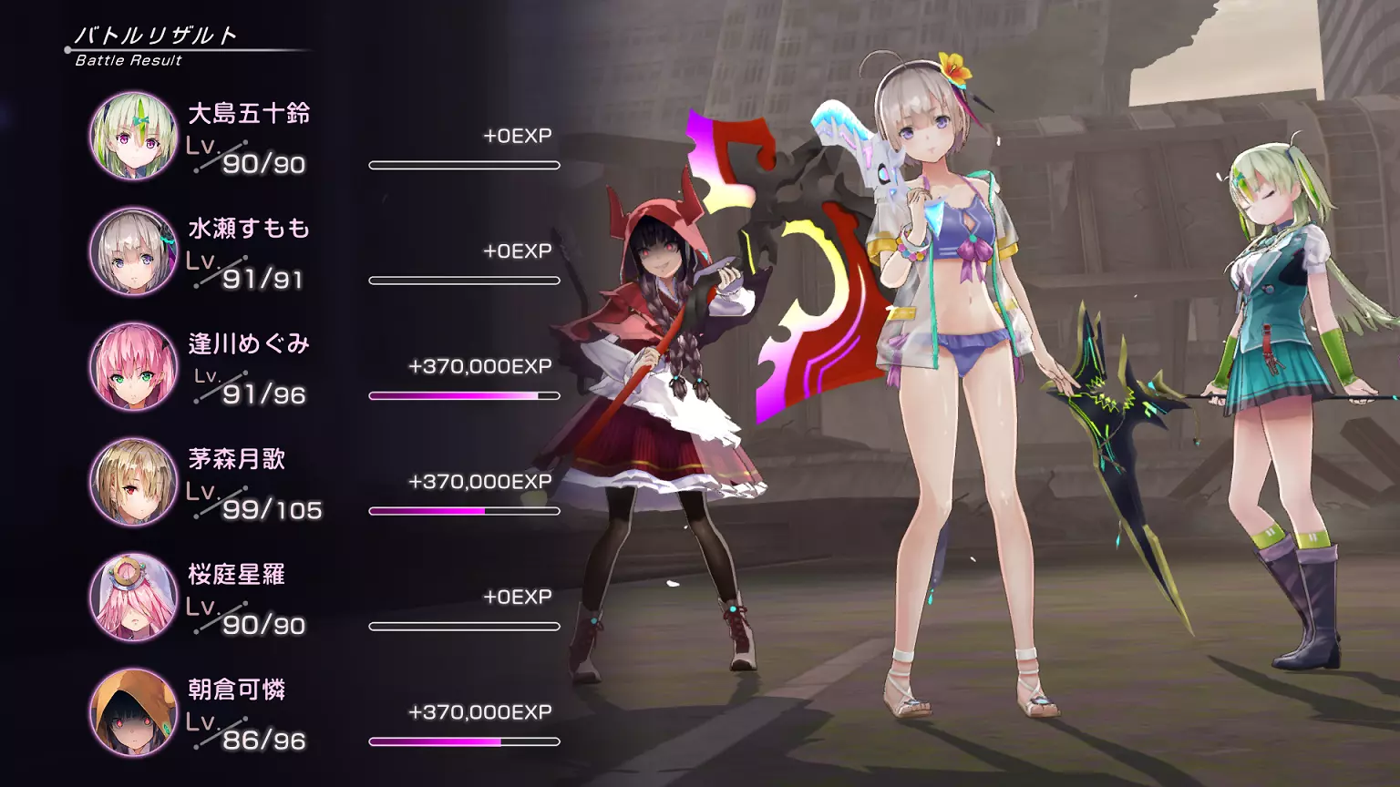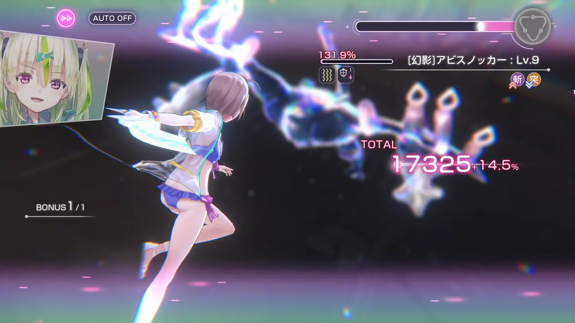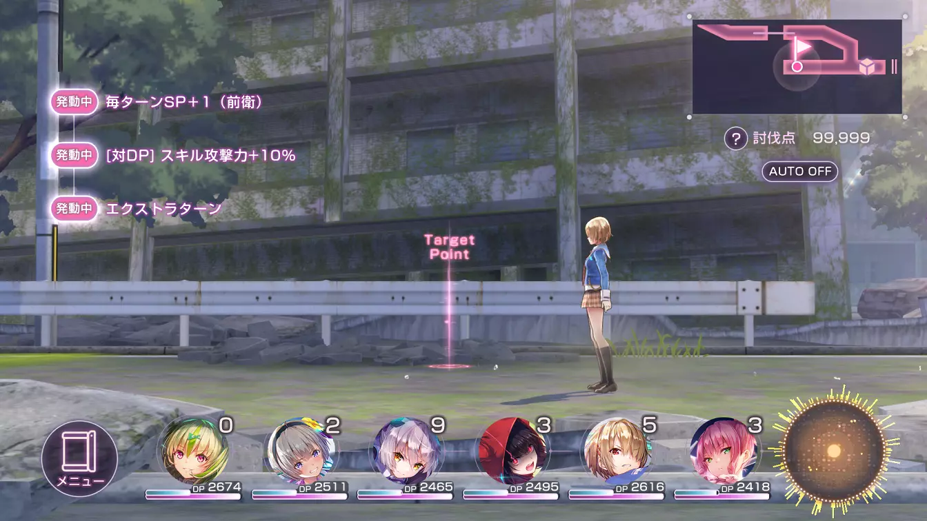 在第6回合前(或直到所有队员都能释放终极技能且过载计量条接近满值时)一直使用普通攻击。 每回合切换为更高DP的角色,因为此处不使用恢复技能。 注意:使用对首领战没有抗性的角色。