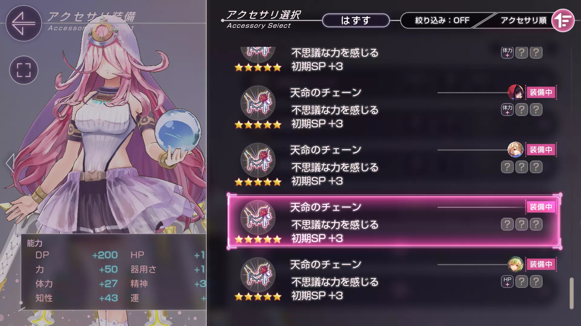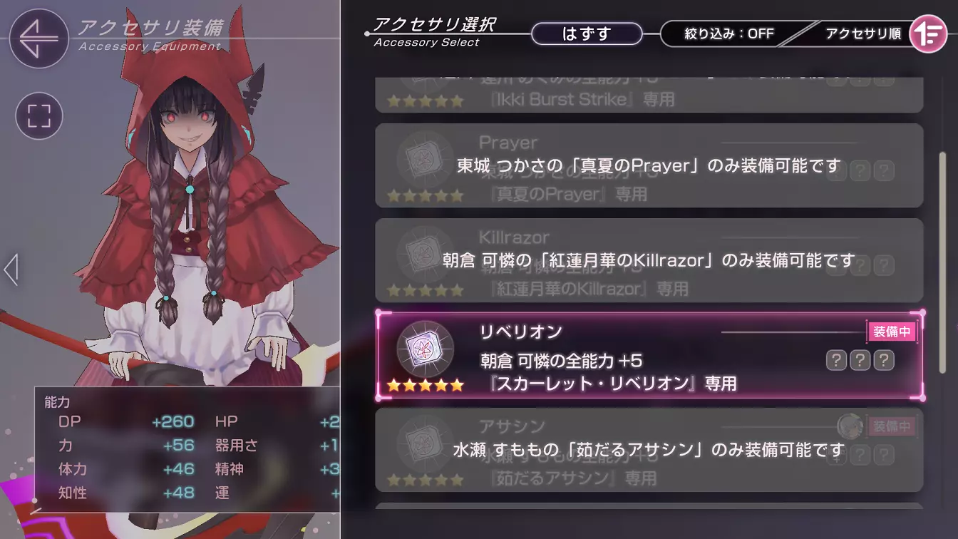 每个相同稀有度的角色拥有不同的专属配饰,例如Megumi