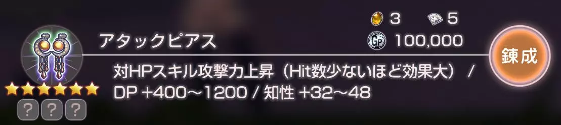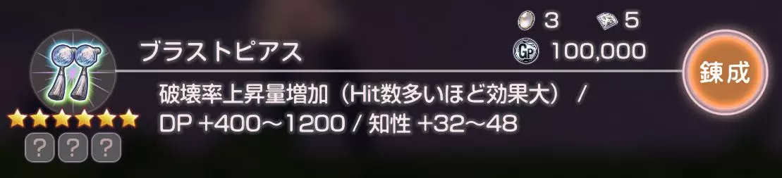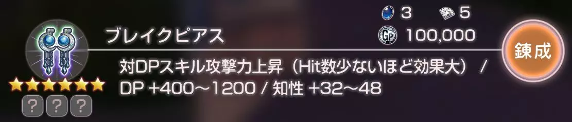 对HP条敌人技能伤害提升(命中次数越少,伤害越高)/防御力+400~1200/智力+32~48