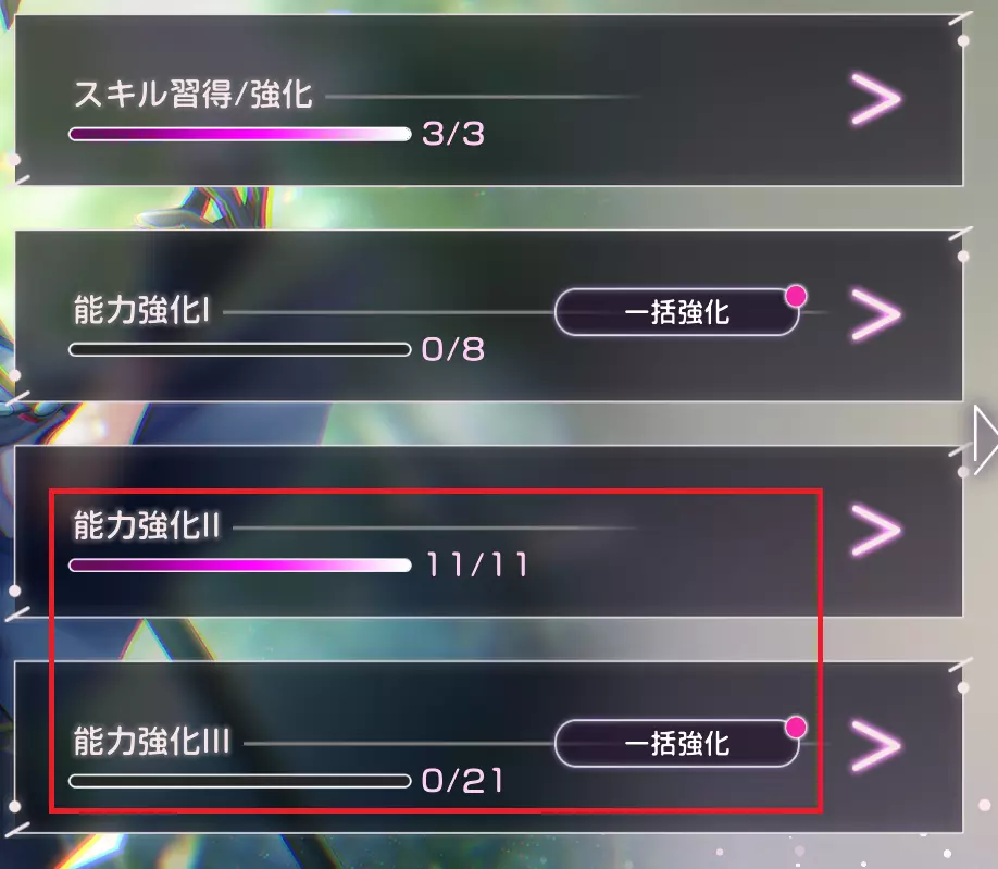 说明:强化等级末尾的通用能力与参数