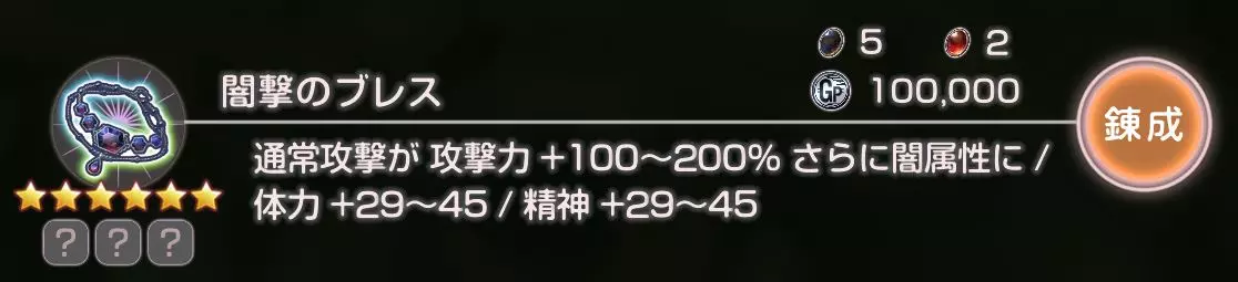 普通攻击伤害提升100~200%,附加暗属性/ 体力+29~45/精神+29~45 所需物品 图标 名称 位置