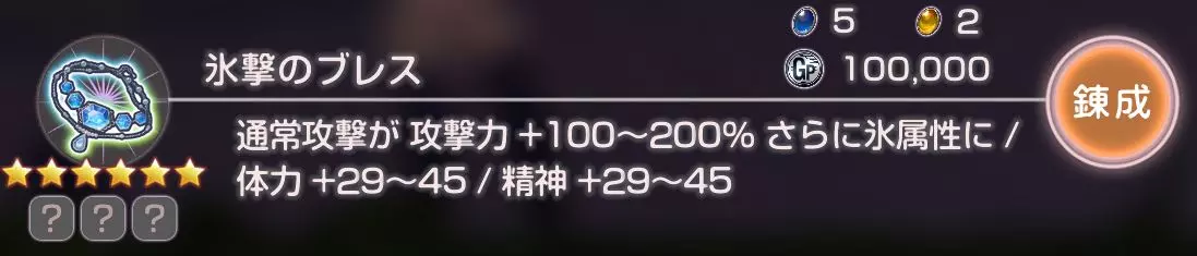 普通攻击伤害提升100~200%(附加水属性)/体力+29~45/精神+29~45
