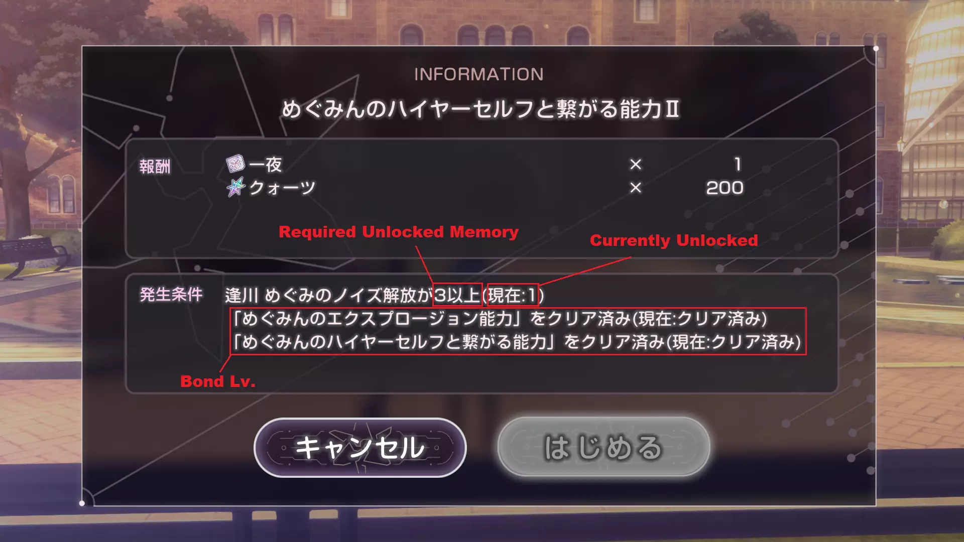 每次解锁和/或变更仅需1个物品。 第六感 提升羁绊等级所需的状态。