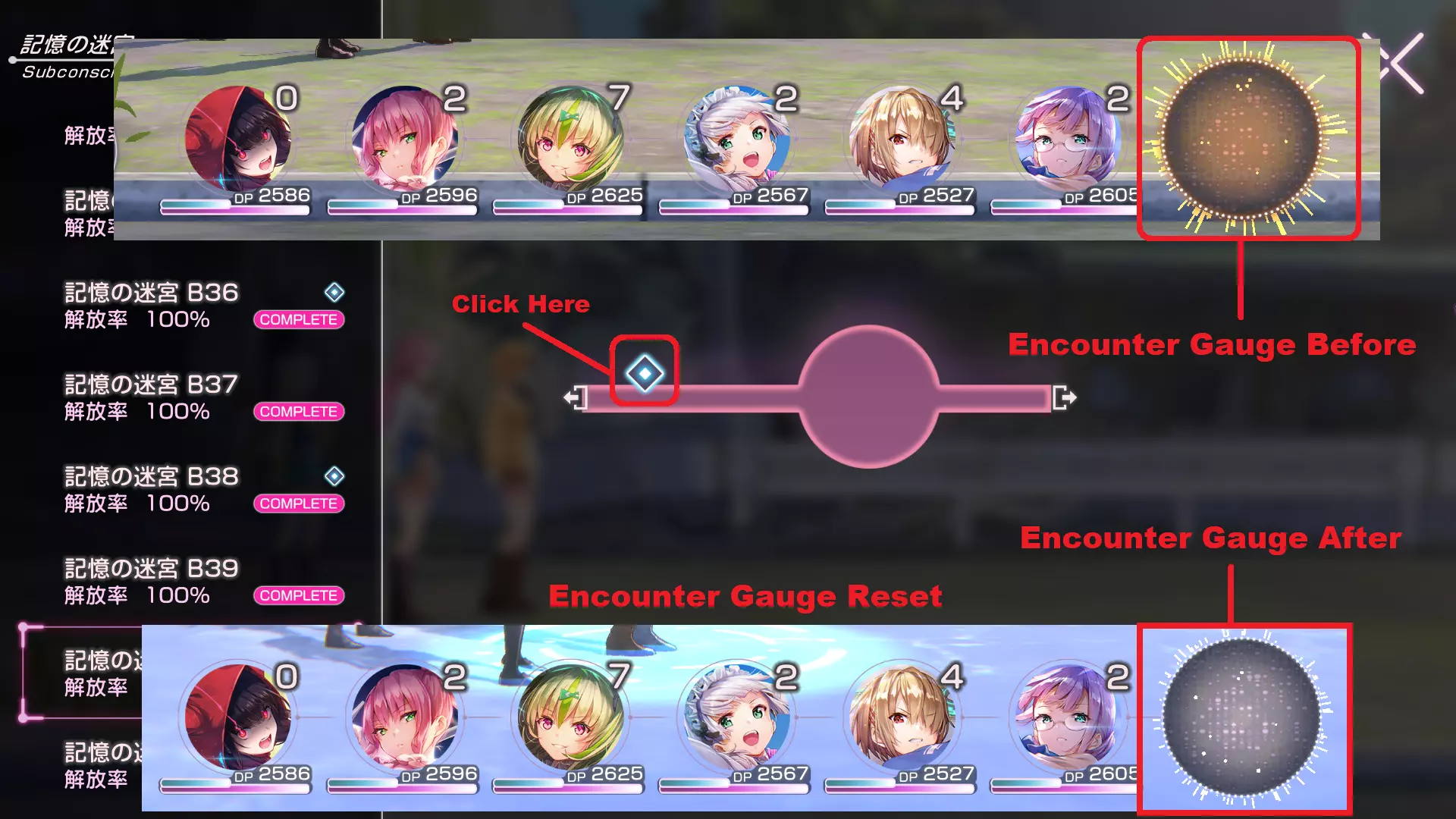 确保每次收集完增益地下城后重置遭遇计量条。重置点位于每10的倍数区域或 Boss 房间。