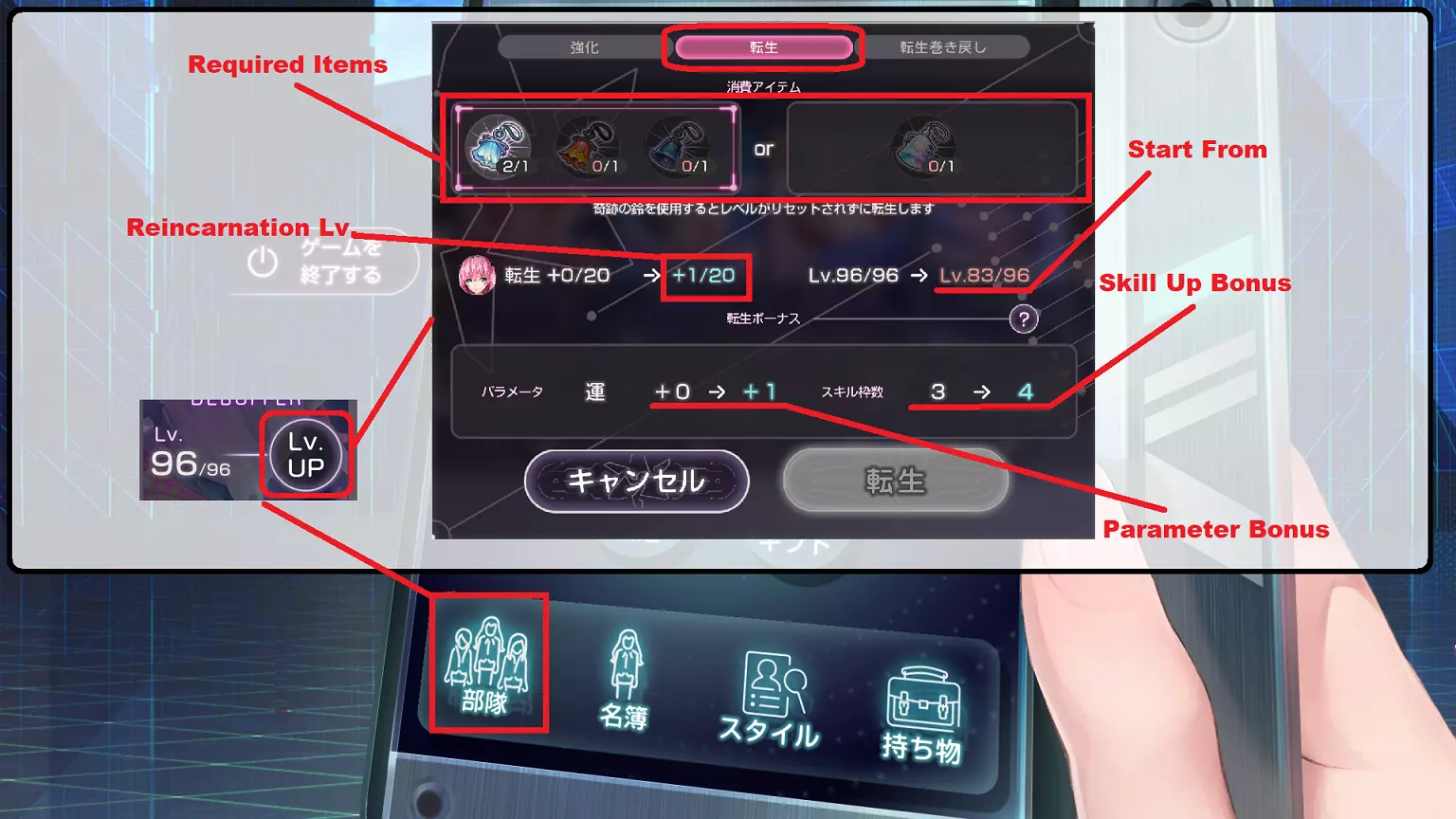 转世道具获取途径: - 每通关10次地下城(击败 Boss) - 活动兑换 - 其他 需求等级90级 重置角色等级至1级,并添加新的参数加成(若满足条件则技能+1) 情况说明: 若进行转世的角色等级超过90级,例如96级。 无需担心,91级至96级的6级经验将会继承,角色将从83级开始。