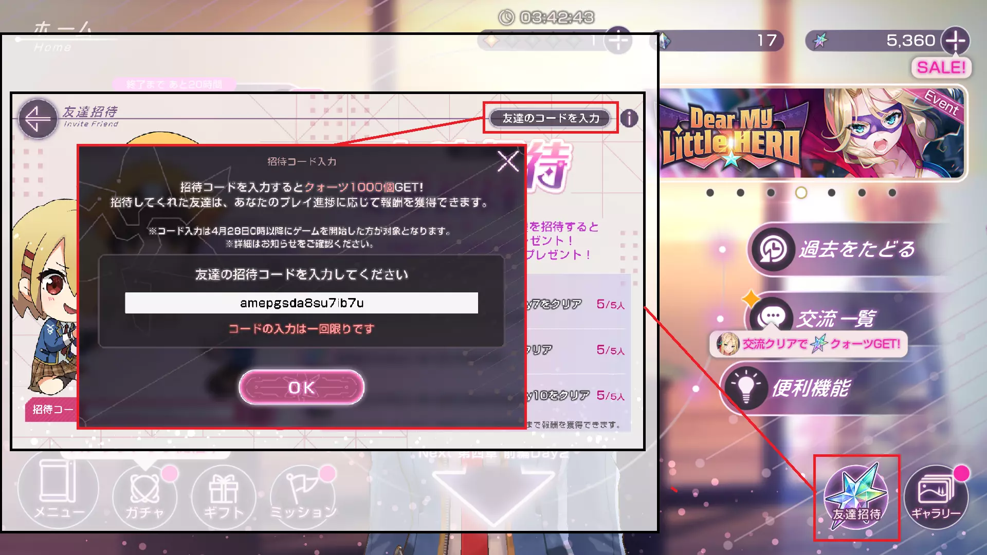 Invitation CodeHere's my Invitation Code, 1000 Quartz for You ^^ amepgsda8su7ib7uDont worry, even my invited has reached the limit (5/5) But actually is up to 1000 People per invitation code and ofcorse i don't accept any gift again, its just for You