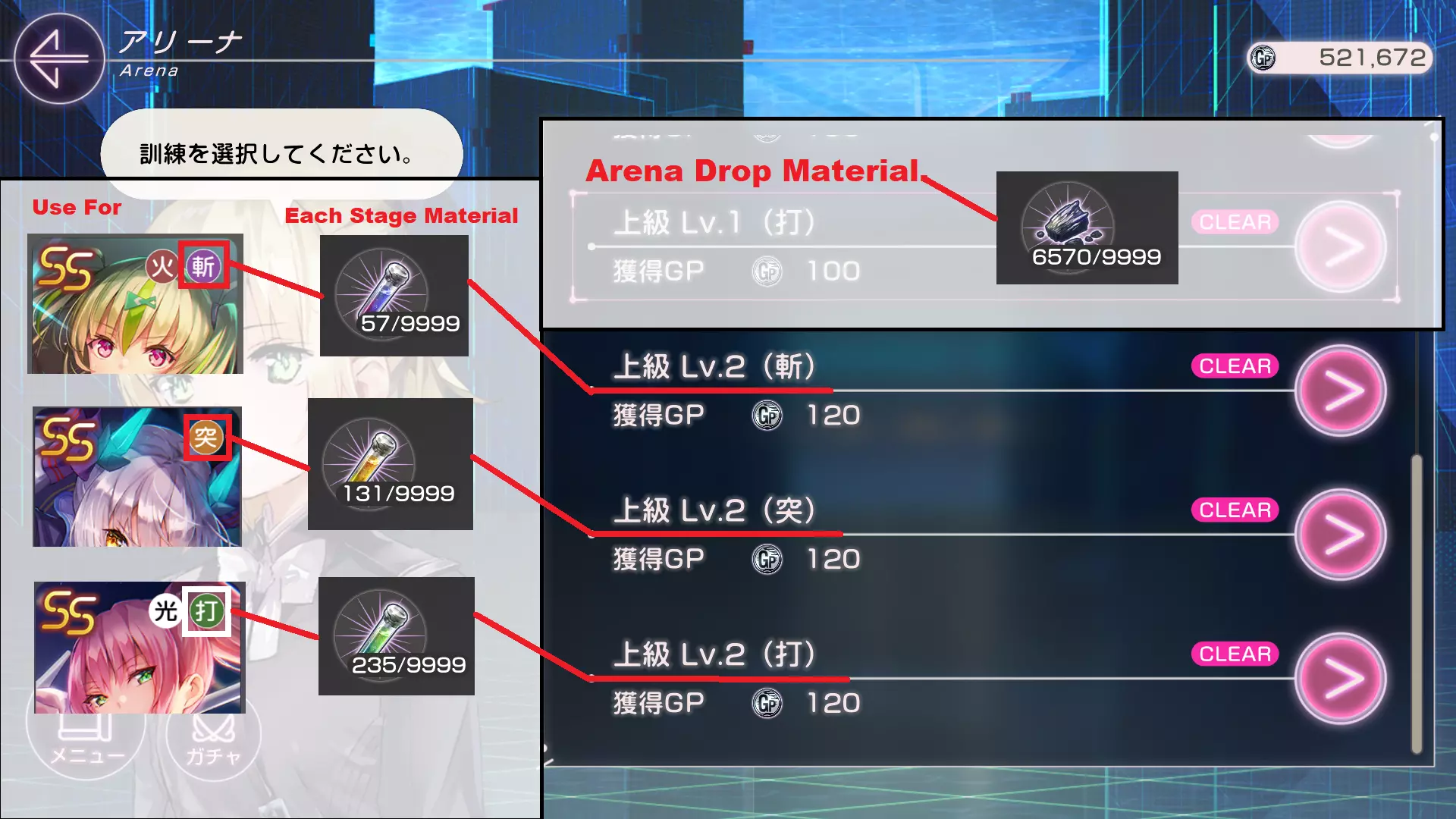 竞技场掉落材料:每个关卡会为不同的炽天使/武器属性掉落不同的材料。