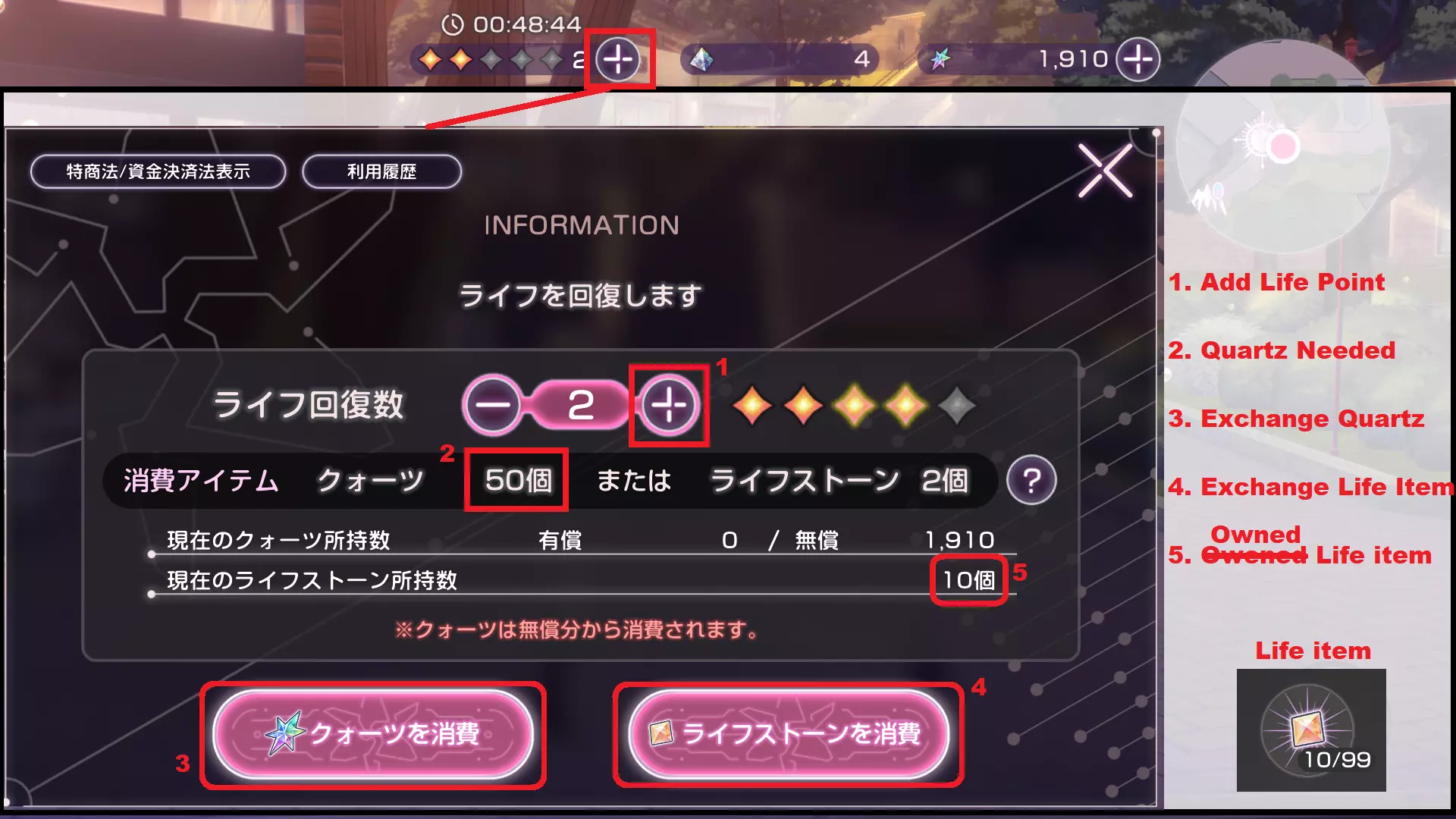 请记住,周末的“自由时间”会提前开始。 其他 生命点数:我非常推荐每天用石英购买2点生命点数,只需50石英。
