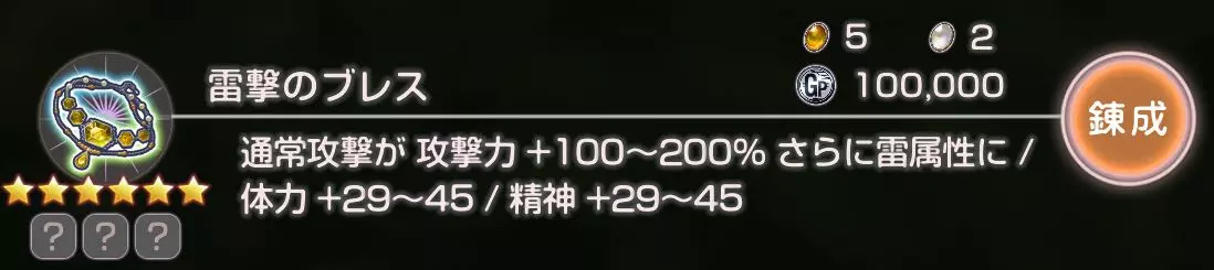 普通攻击伤害提升100~200%,附加雷电属性/力量+29~45/精神+29~45