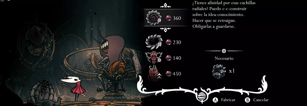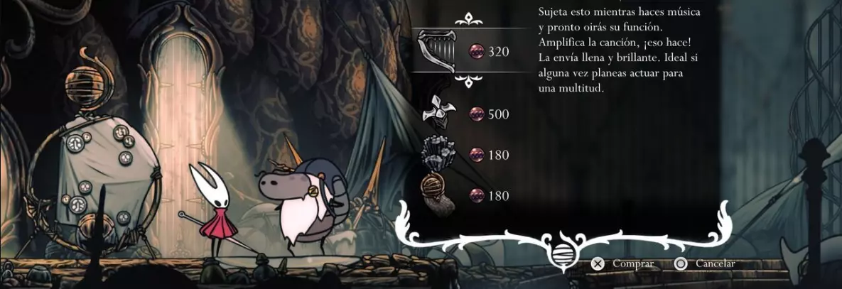获取方法:可在歌者据点向朱比拉娜购买,价格为320个玫瑰念珠,但需先完成愿望【失落的商人】(见下方地图)。 若未解锁朱比拉娜,需先前往珊瑚密室的第一圣所(东北区域),进入建筑内敲响钟声以与守护者对话。之后坐在长椅上并返回,即可进入愿望之墙,届时会出现任务【流动商人】。 朱比拉娜位于珊瑚密室的特定房间内;击败该区域的敌人后她才会出现。 花费/要求: - 完成愿望【失落的商人】 - 320个玫瑰念珠 - 已解锁朱比拉娜负载能力/使用次数:无限。 描述:织者的精密装置。与音乐共鸣,可放大并提升表演效果。 能放大并强化刺针的效果。