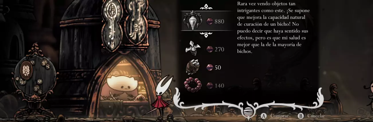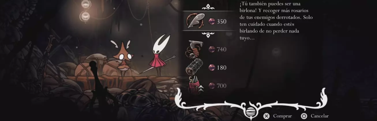 获取方式:在【风化阶梯】的格林德尔商店花费350枚【玫瑰念珠】购买,该商店仅在拥有【二段跳】技能后可进入(见下方地图)。 花费/要求:350枚玫瑰念珠。 携带量/使用次数:无限。 描述:盗贼之间的身份象征。 击败敌人可获得额外玫瑰念珠,但受到伤害会损失部分玫瑰念珠。