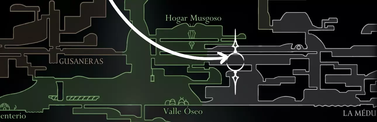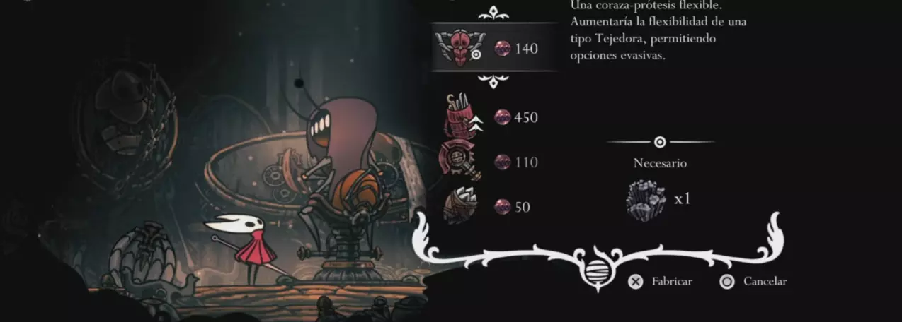 获取方法:在【远方田野】的【朝圣者休息处】右下方区域,快速移动镜头即可获得(见下方地图)。 成本/要求:拥有【丝弦琴】技能以打开门。 负载能力/使用次数:无限。 描述:实验性护胫,由【编织者】制作。利用携带者自身的丝线提升冲刺速度。