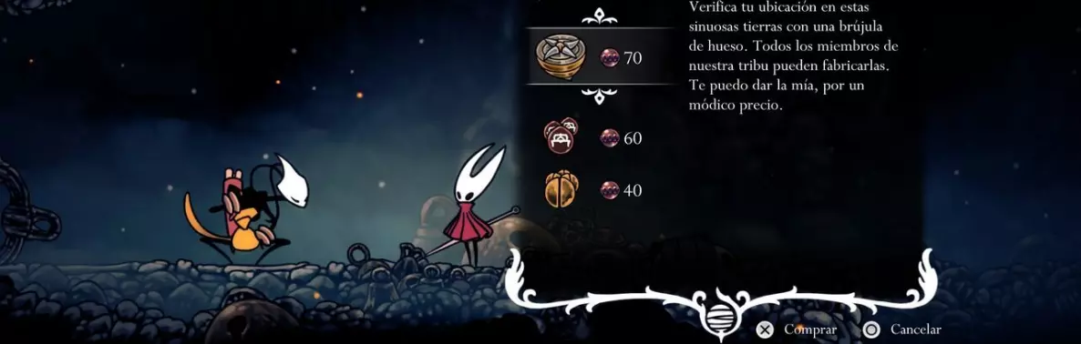 获取方式:在首次与沙克拉相遇时,向她花费70个念珠购买(见下方地图)。 花费/要求:70个念珠。 携带容量/使用次数:无限。 描述:由甲壳精心雕刻而成的复杂追踪装置。装备后,携带者的位置将在地图上标记出来。
