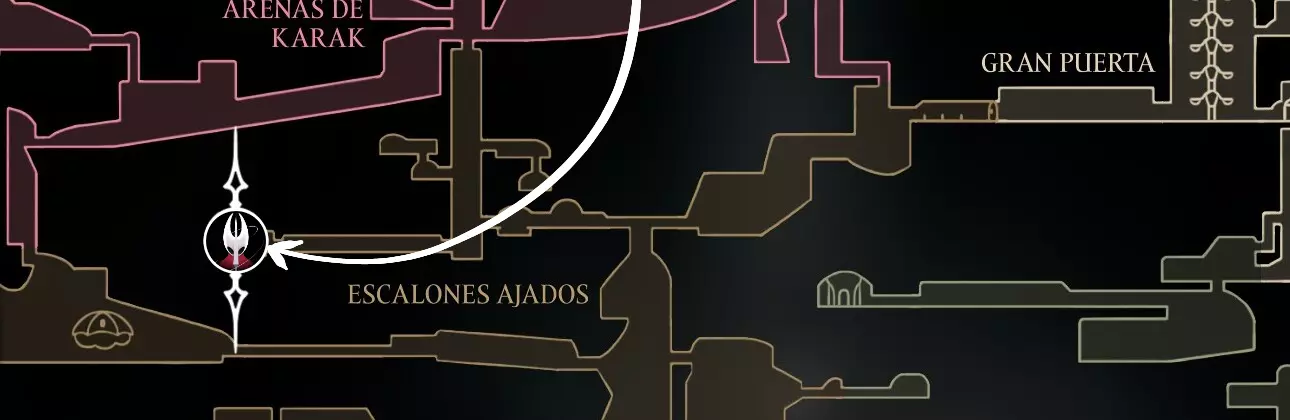 获取方法:在歌者飞地区域向朱比拉娜购买,价格为350枚玫瑰念珠(见下方地图)。 若尚未解锁朱比拉娜,需先前往珊瑚密室的第一圣所(东北区域),进入建筑内敲响钟声以与守护者对话。之后坐在长椅上,返回后即可进入愿望之墙,届时会出现任务:愿望“流动商人”。 朱比拉娜位于珊瑚密室的特定房间内;击败该区域的敌人后她才会出现。 花费/要求:350枚玫瑰念珠。已解锁朱比拉娜。 携带容量/使用次数:无限。描述:能够附着在墙壁上的金色飞镖